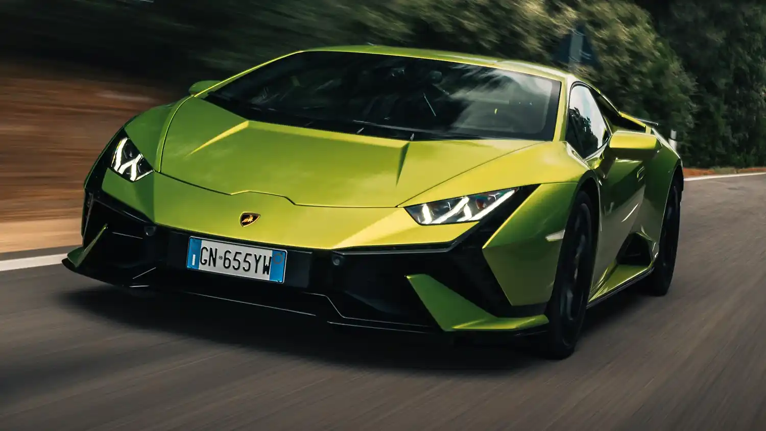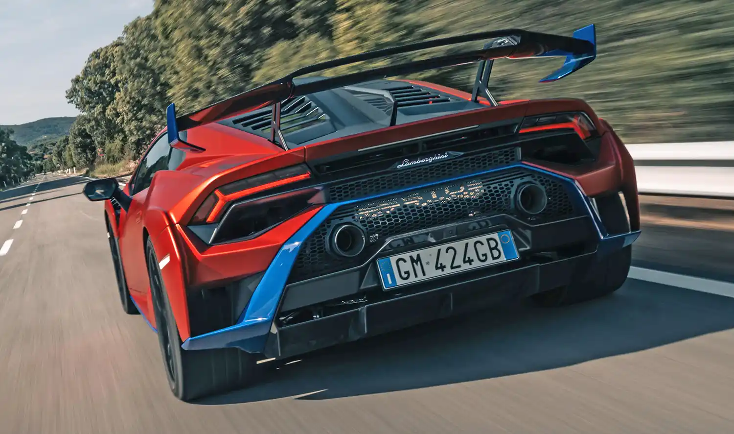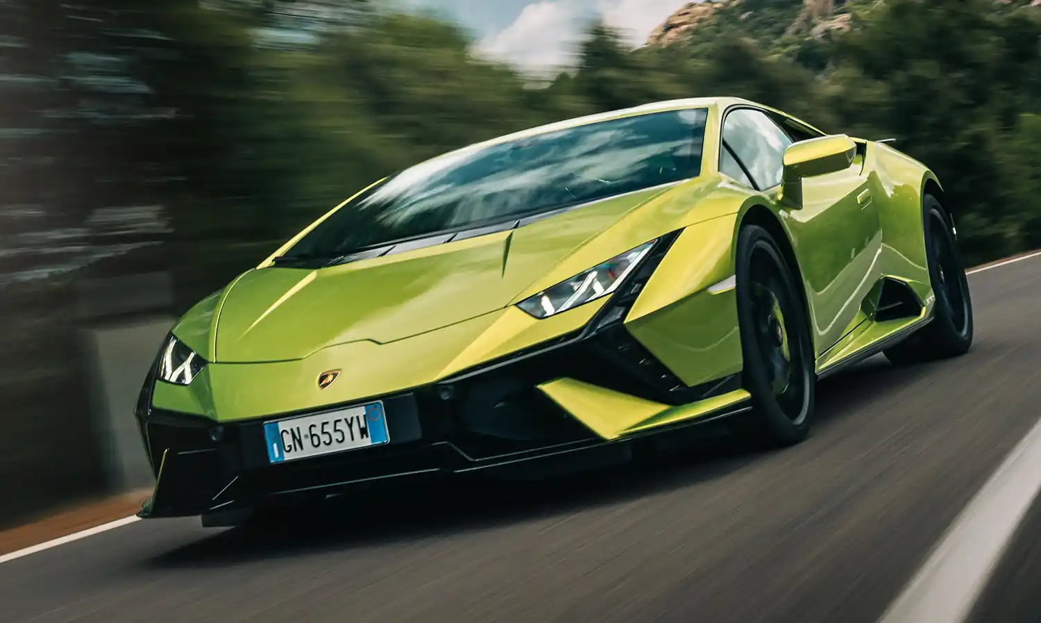 Huracán Tecnica, presented in 2022, is seen in Verde Citrea and Blu Astraeus with interiors in Nero Ade and Bianco Leda stitching and Nero Ade and Verde Scandal stitching respectively. Tecnica is a car developed for pilots seeking driving fun and lifestyle perfection on both on track and road. The vehicle accents improved aerodynamics, an evolved design. and ened ease of use with rear-wheel drive and rear-wheel steering: combined with the 640 HP engine taken from the Huracán STO, Tecnica is the perfect fun-to-drive companion for a track session or an exhilarating journey by road.