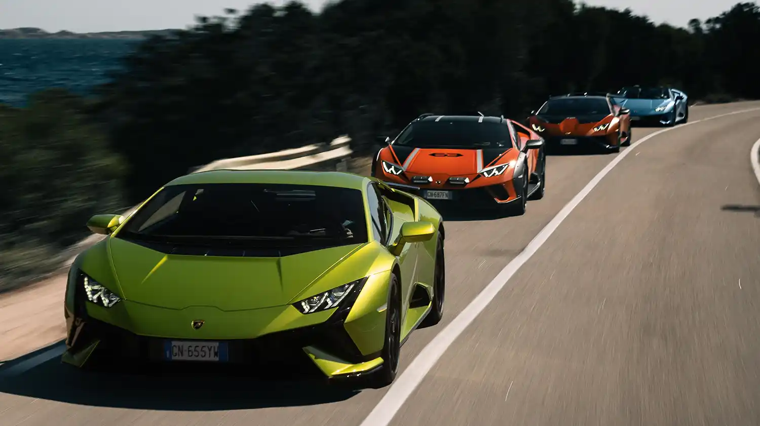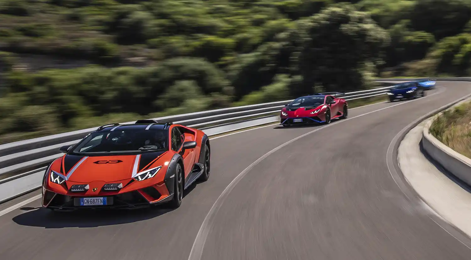 In the marque’s 60th anniversary year, the Lamborghini Huracán Evo Spyder, STO, Tecnica and the newly presented Sterrato set out together for the first time, showcasing the different souls within the V10 Lamborghini super sports car line-up. The winding and scenic roads of Sardinia are the perfect setting to experience the performance orientation as well as the typical characters of each of the four models, enjoyed by everyone who takes the wheel.