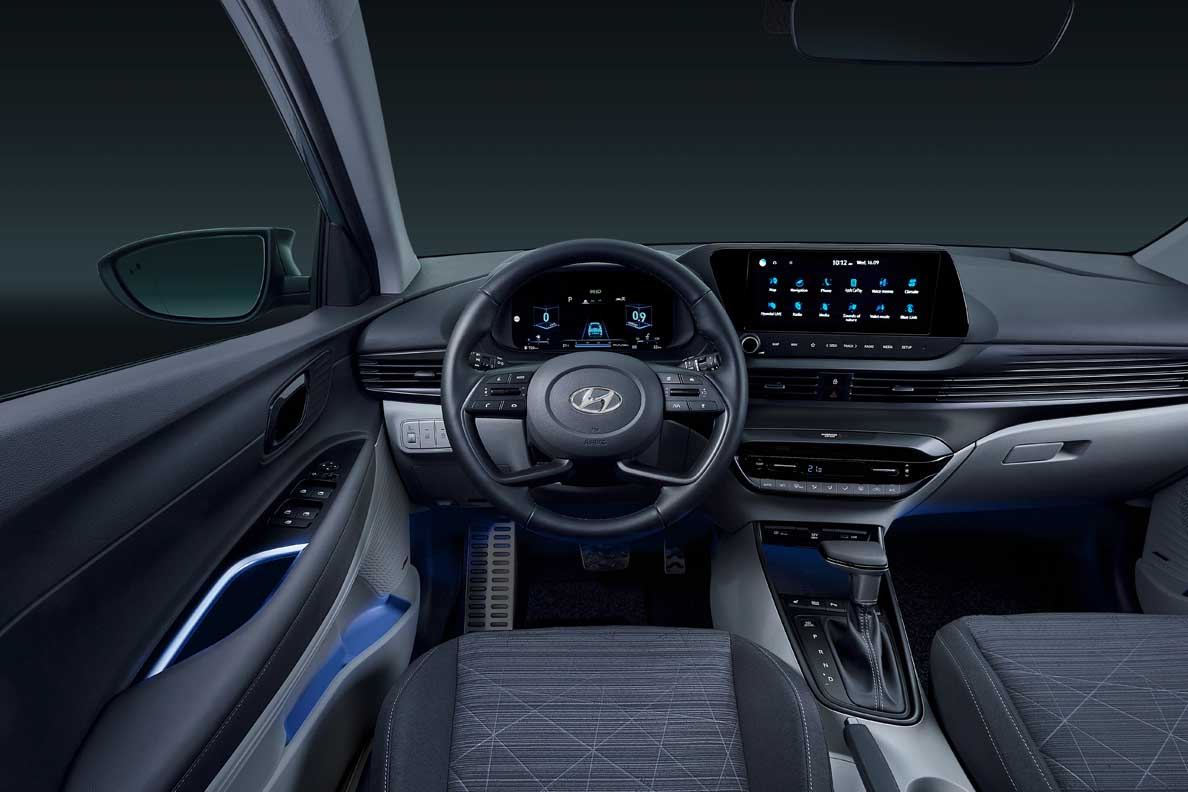 Bayon features a clean, roomy, well-lit interior. There is a strong focus on maximising front and rear passenger comfort and increasing boot space. The interior is defined by a range of connectivity equipment, including a 10.25-inch digital cluster and a 10.25-inch AVN or 8-inch Display Audio. Occupants can benefit from LED ambient lighting technology integrated into the front passenger foot areas, door wells, and front door pull handle areas, as well as the storage area below the centre console.