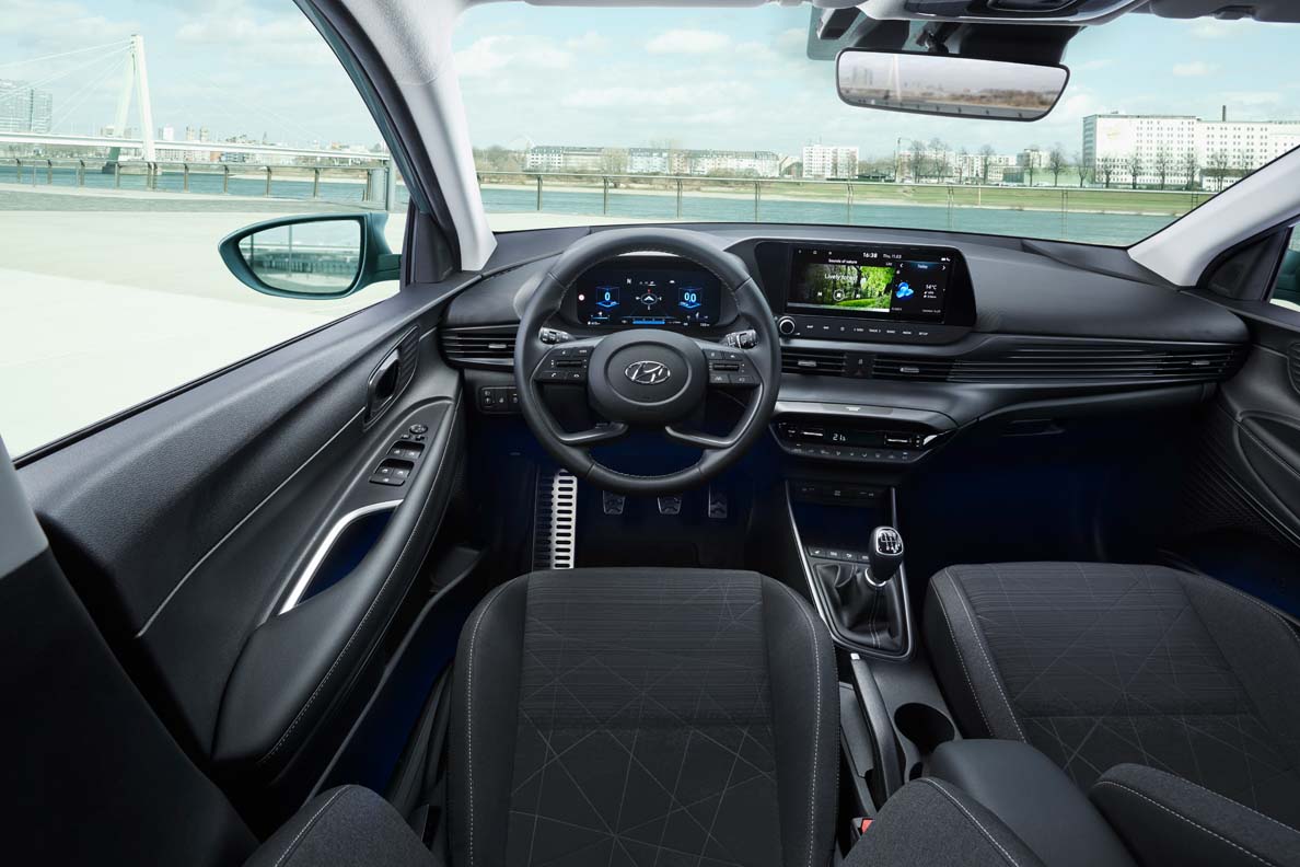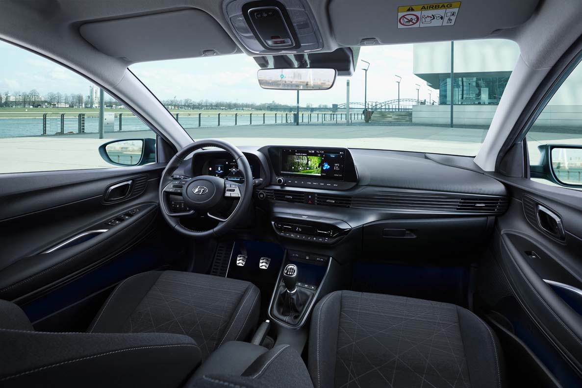 A carefully-selected neutral range of interior colours and materials provides maximum compatibility with the exterior colour range. A calm colour and trim concept with small and subtle accents creates a serene atmosphere which allows the driver to focus. Hyundai Bayon comes standard with a Full Black cloth interior, with two optional colour combinations available.