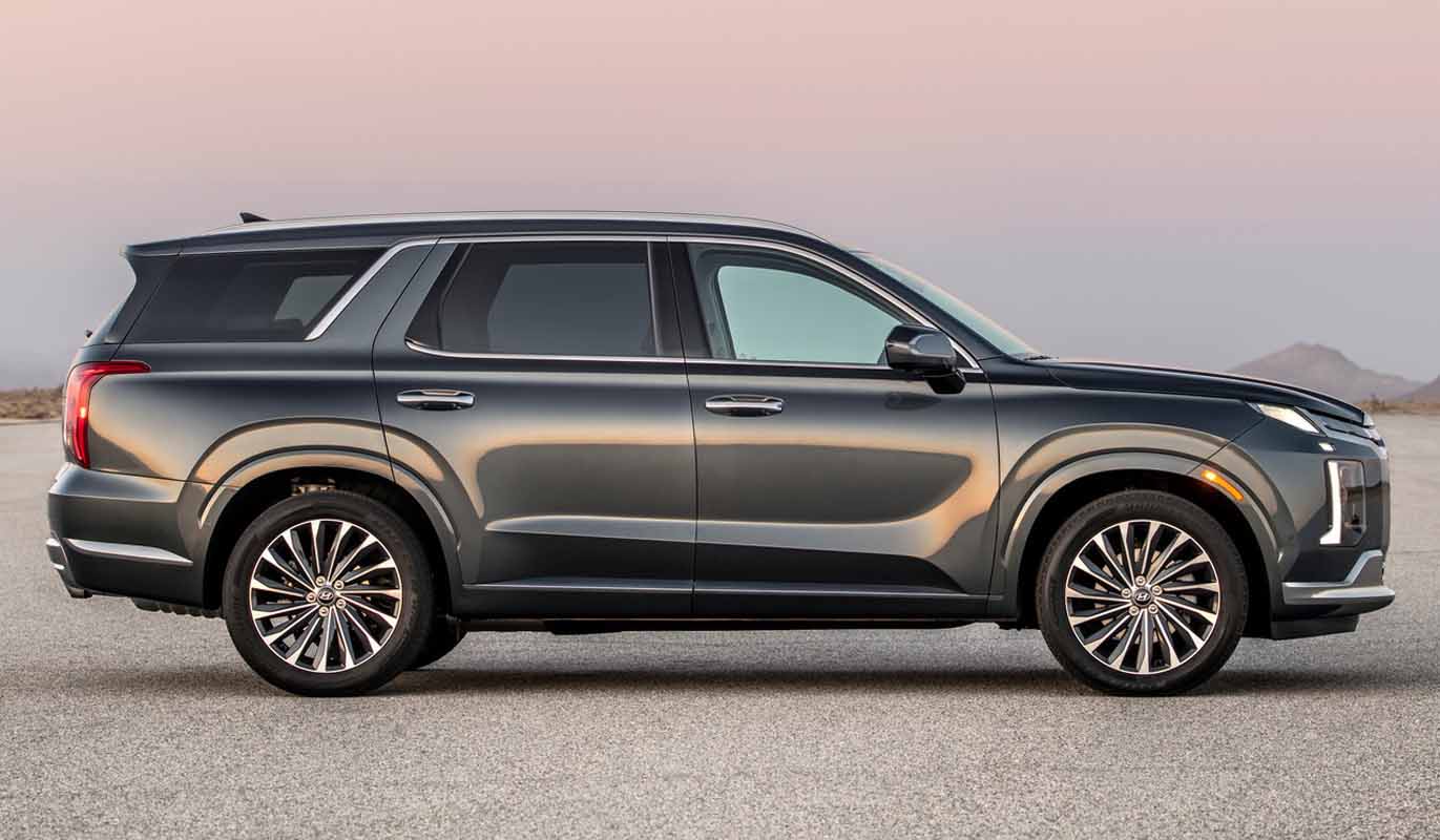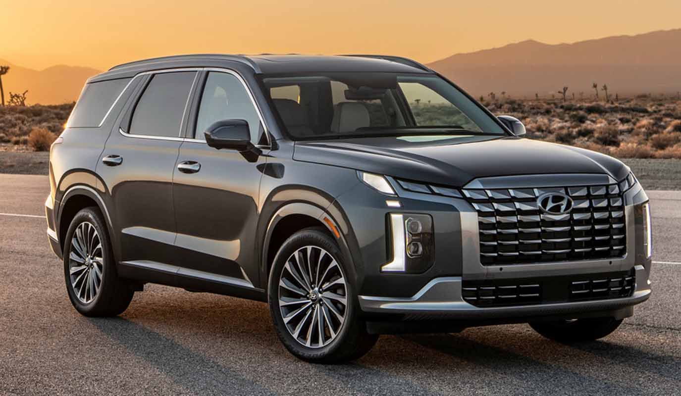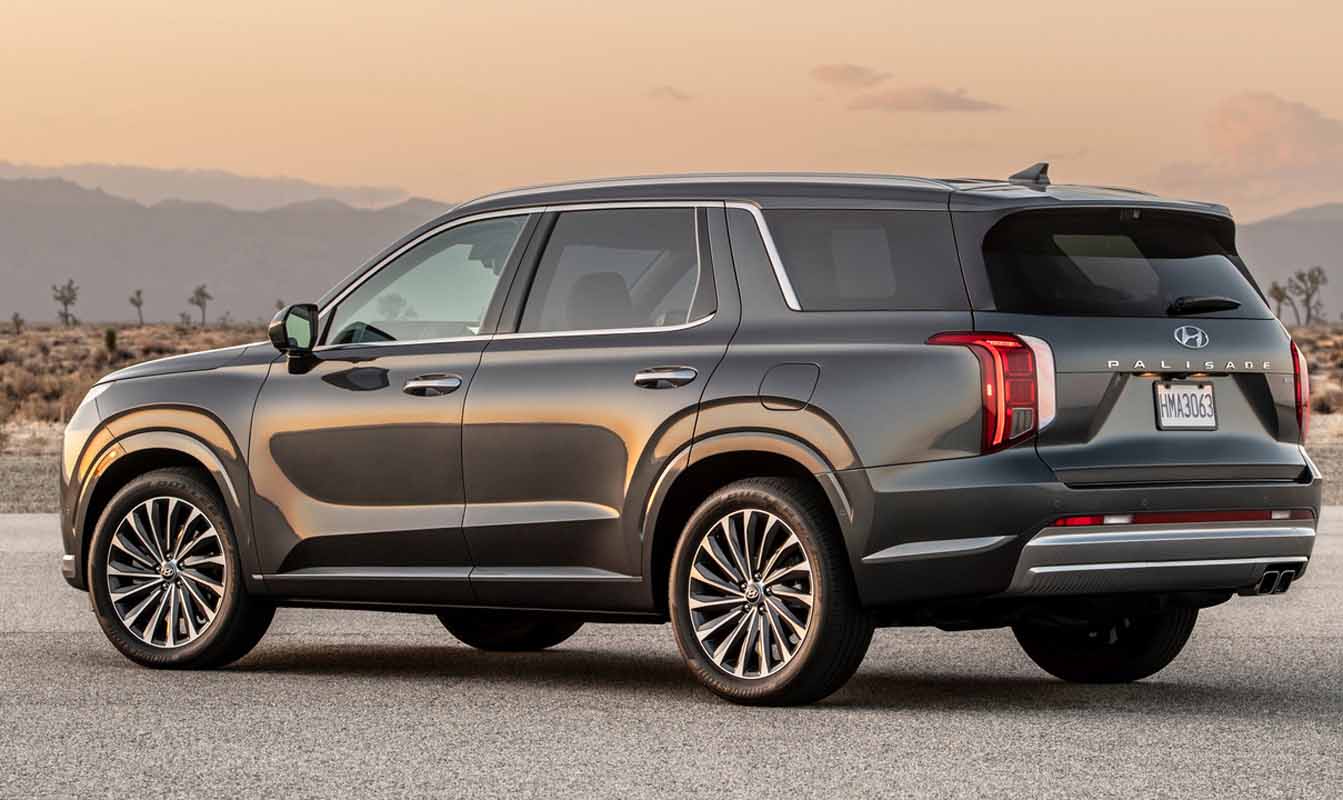 2023 Palisade exterior colors continue to include: Abyss Black, Creamy White, Olivine Grey, Graphite Grey, Gaia Brown, Sierra Burgundy, Shimmering Silver and Moonlight Blue, Robust Emerald. Interior seating is available in cloth, leather, and premium Napa leather with range-toping Calligraphy line.