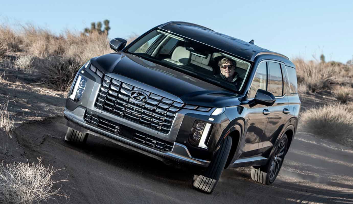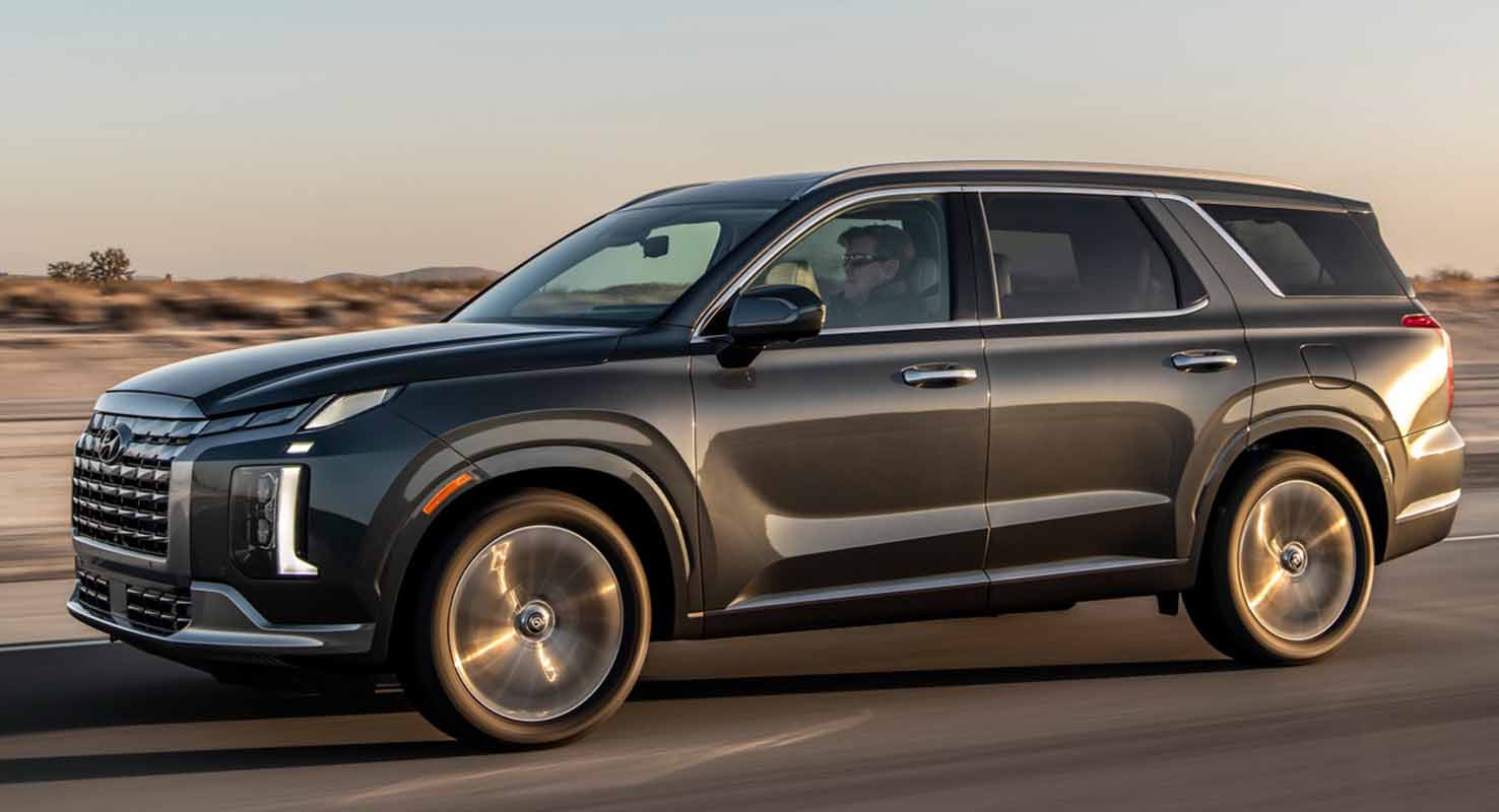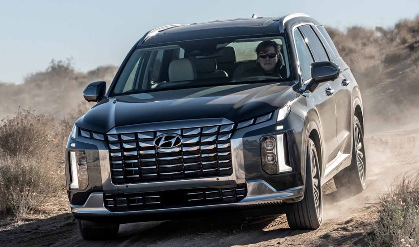 2023 Palisade exterior colors continue to include: Abyss Black, Creamy White, Olivine Grey, Graphite Grey, Gaia Brown, Sierra Burgundy, Shimmering Silver and Moonlight Blue, Robust Emerald. Interior seating is available in cloth, leather, and premium Napa leather with range-toping Calligraphy line.
