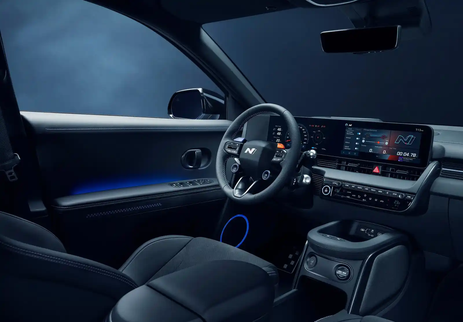 Several exclusive features aid track performance. N Grin Boost maximizes acceleration by a power increment of 10 seconds and N Launch Control provides three different traction levels for the fastest possible start, allowing drivers to launch their vehicle like a professional race car. Track SOC (state-of-charge) automatically calculates battery consumption per lap.