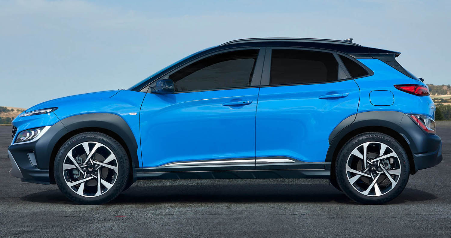Kona was developed with a focus on enhanced driving dynamics and responsive performance for a variety of urban and multi-surface driving conditions. The long wheelbase, short overhangs and wide track create a planted stance that results in exceptional agility in urban environments with enhanced linear stability and ride comfort. For 2022, noise, vibration and harshness (NVH) is reduced by new acoustic windshield glass, new instrument panel insulation and additional cargo area insulation. Available 18-inch alloy wheels with 235/45R18 tires give surefooted, agile handling character on a variety of road surfaces.