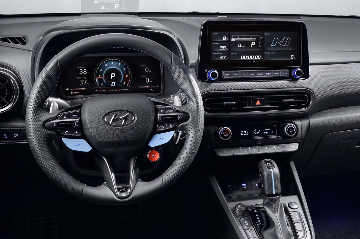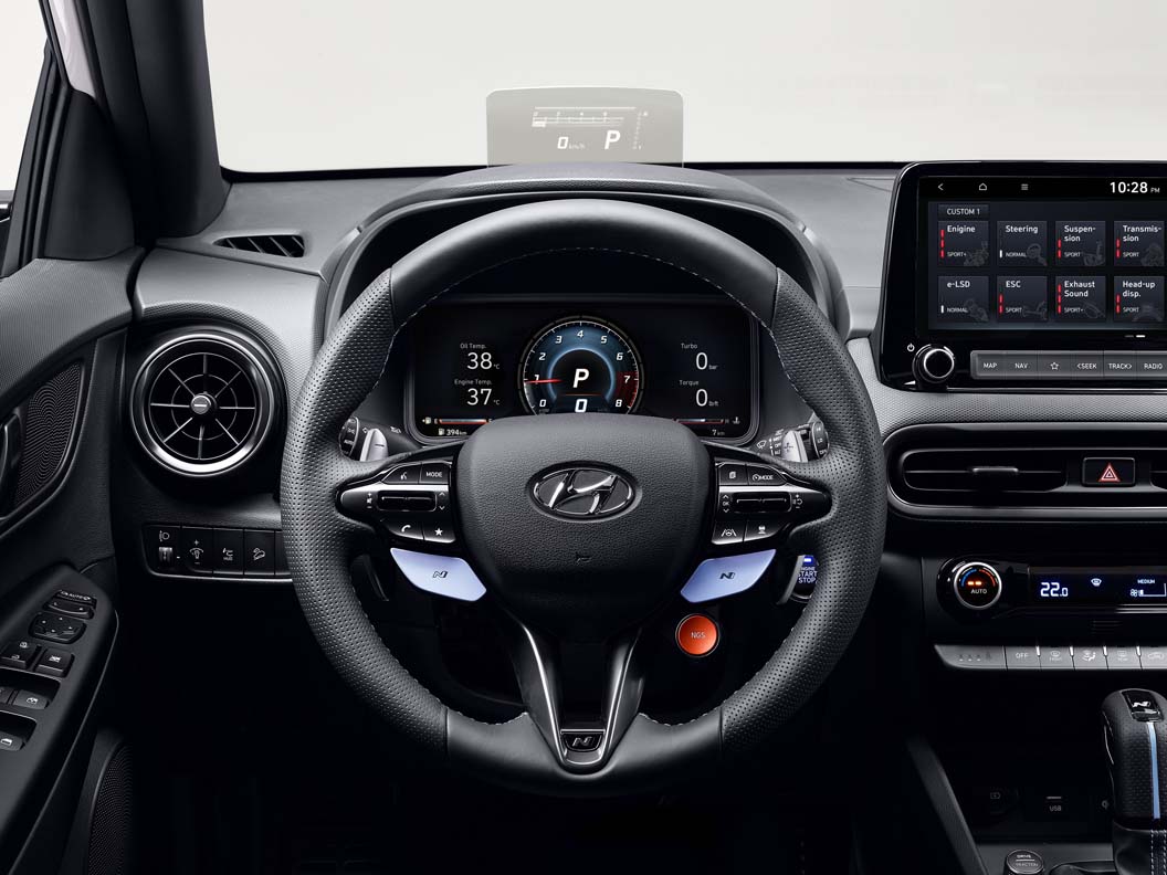 Just like popular racing video games, KONA N has customizable N buttons that can be set to toggle custom modes. The custom modes can be pre-set according to the driver’s preferences. The buttons can also turn on and off the lap timer.