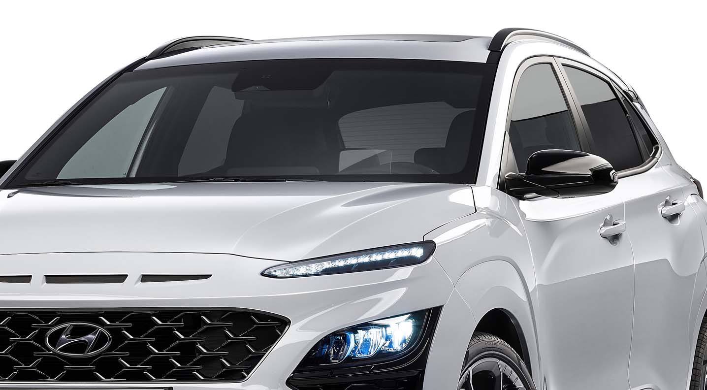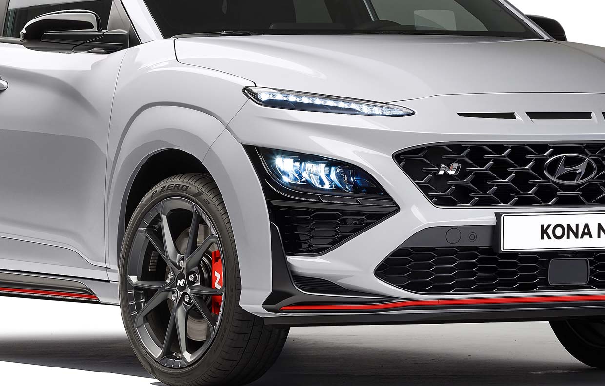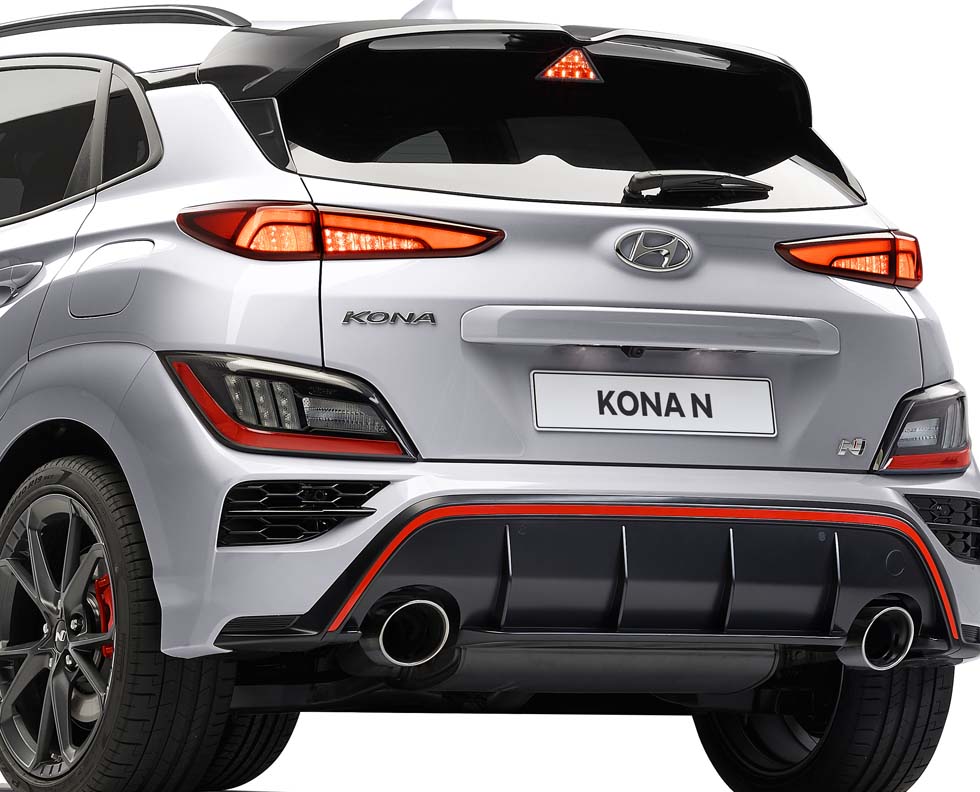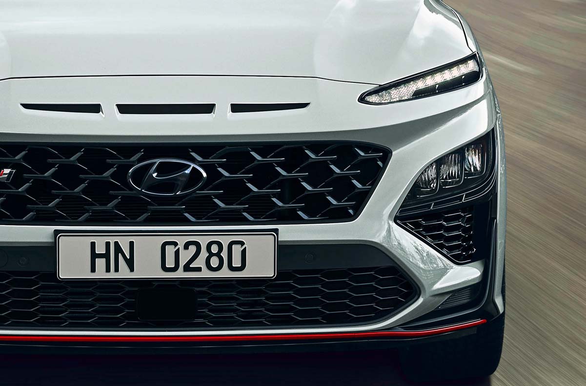 The all-new KONA N SUV embodies a powerful road presence and driving fun that is true to N brand, and its dynamic driving spirit is clearly expressed by its sporty design.