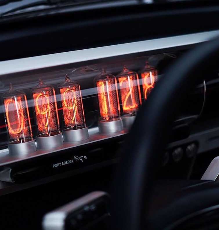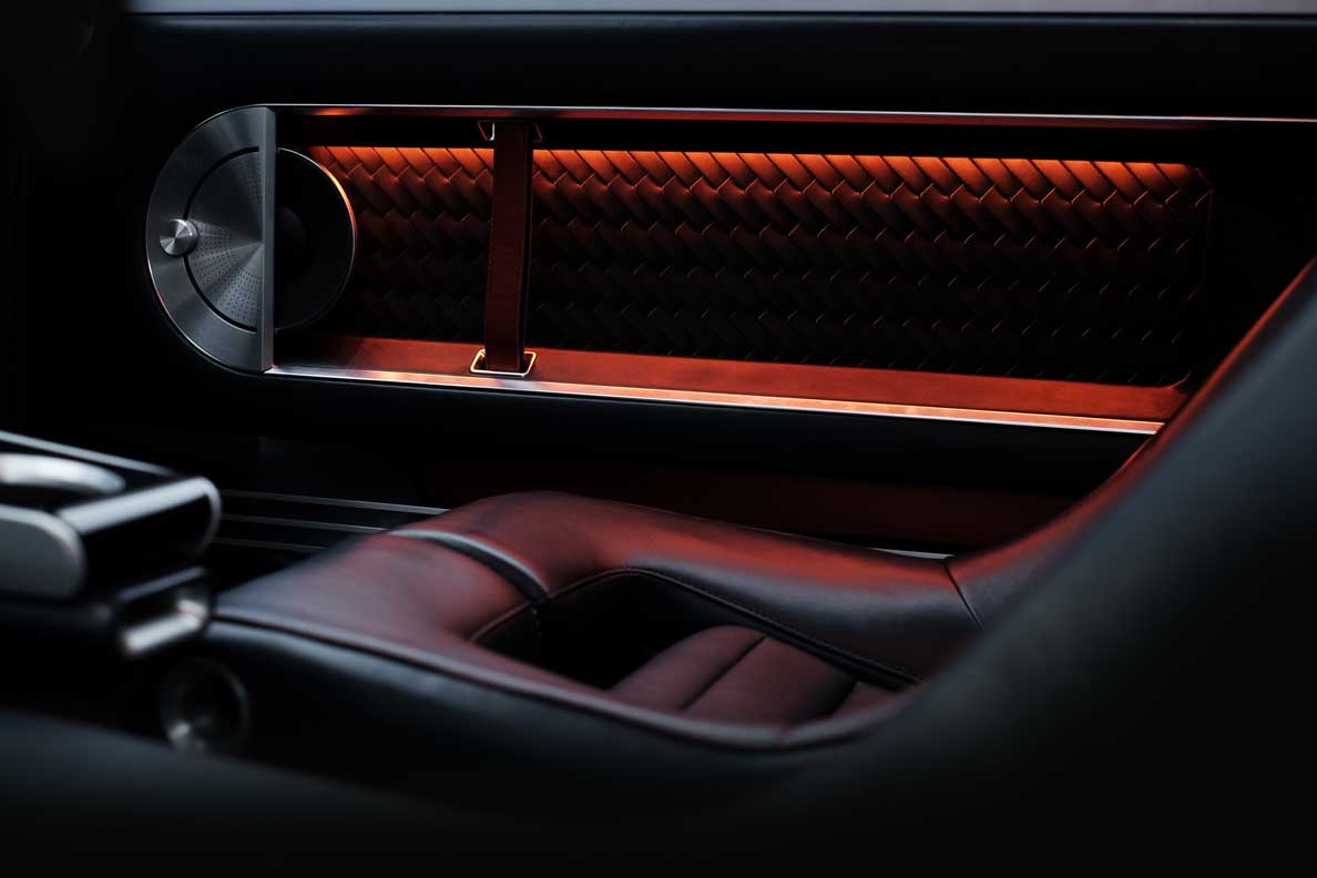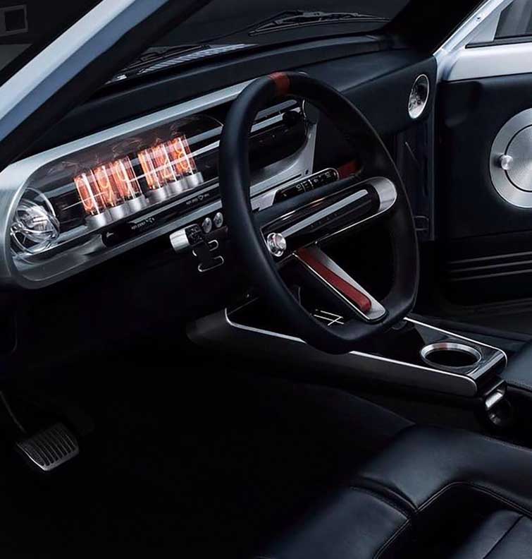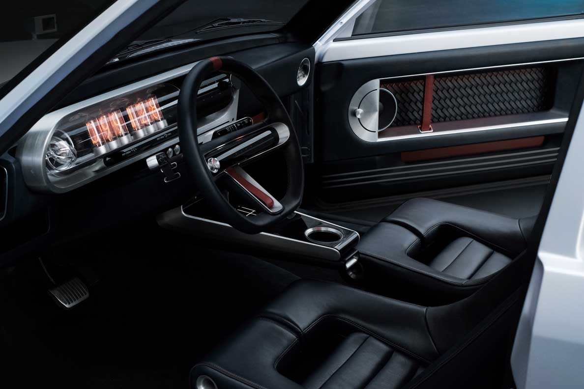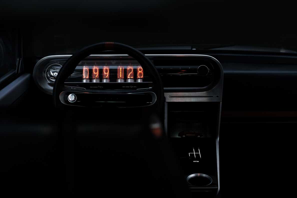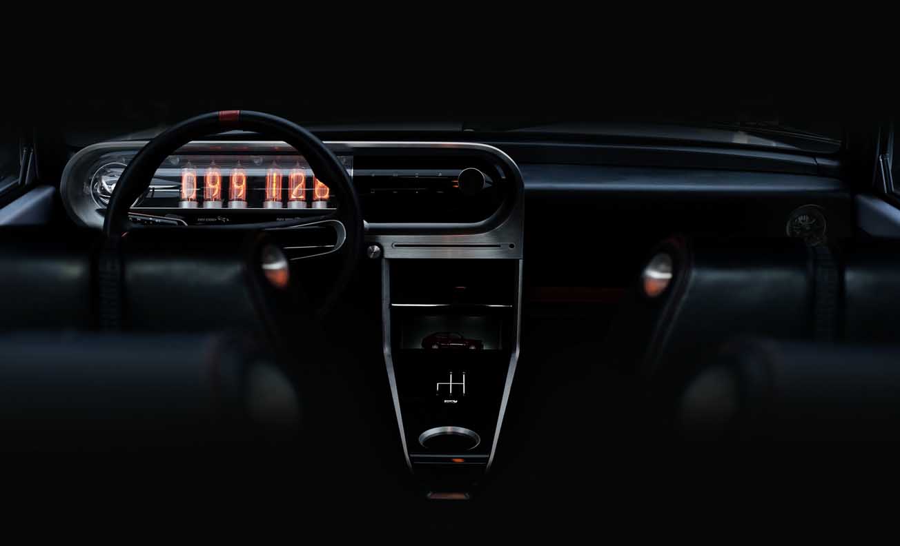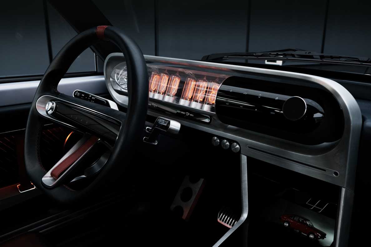 The interior boasts a string of chic and modern accoutrements, including doors made of premium materials that exude a classic feel, a modern lighting system, a speed-gauging instrument panel made of lighted vacuum tubes as well as other stylishly retrofitted design elements.
