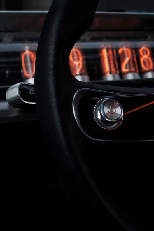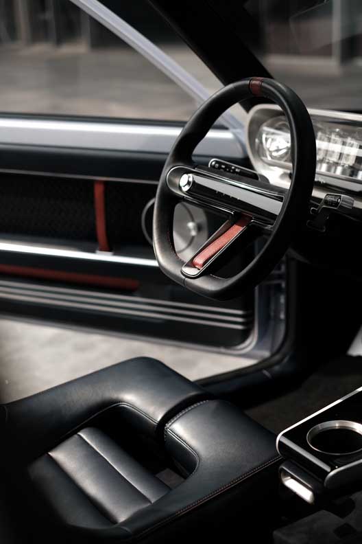 It also contains future-oriented elements, not only retro style. The digital touch transmission, cradle space for mobile phone and voice-activated steering wheel conveys a modern sensibility that will catch people by surprise.