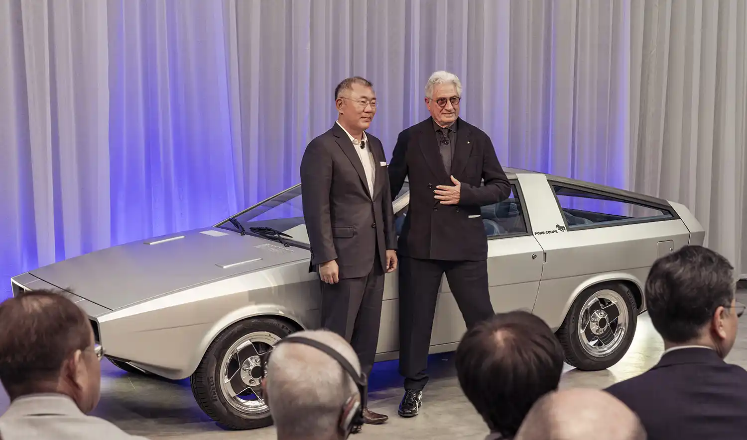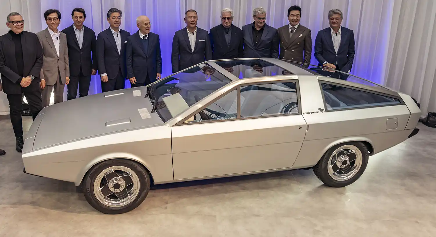 Hyundai Motor unveiled the rebuilt Pony Coupe Concept at the inaugural Hyundai Reunion, a heritage brand platform that reflects on Hyundai Motor’s past and its future direction. Among the representatives present at the event were Giorgetto Giugiaro and his son Fabrizio Giugiaro, long time designer himself, to signal the previously announced restoration, completed by GFG Style, the style center that draws on the creative expertise of Fabrizio and Giorgetto, of the car that led to the creation of the brand’s seminal Pony line-up, Korea’s first independently developed mass-production models.
