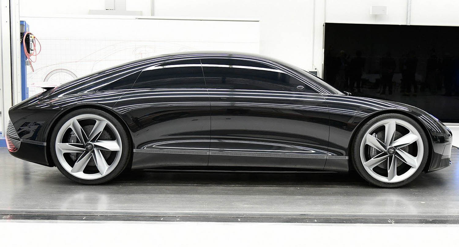 “Prophecy” follows suit with an iconic silhouette of perfect proportions that have been inspired by an aerodynamic design. Leveraging the extended wheelbase and shorter overhang, Hyundai’s designers have achieved the Ultimate Automotive Form, thanks to a new EV architecture defined by pristine surfaces and pure volume in combination with aesthetic harmony and functionality.