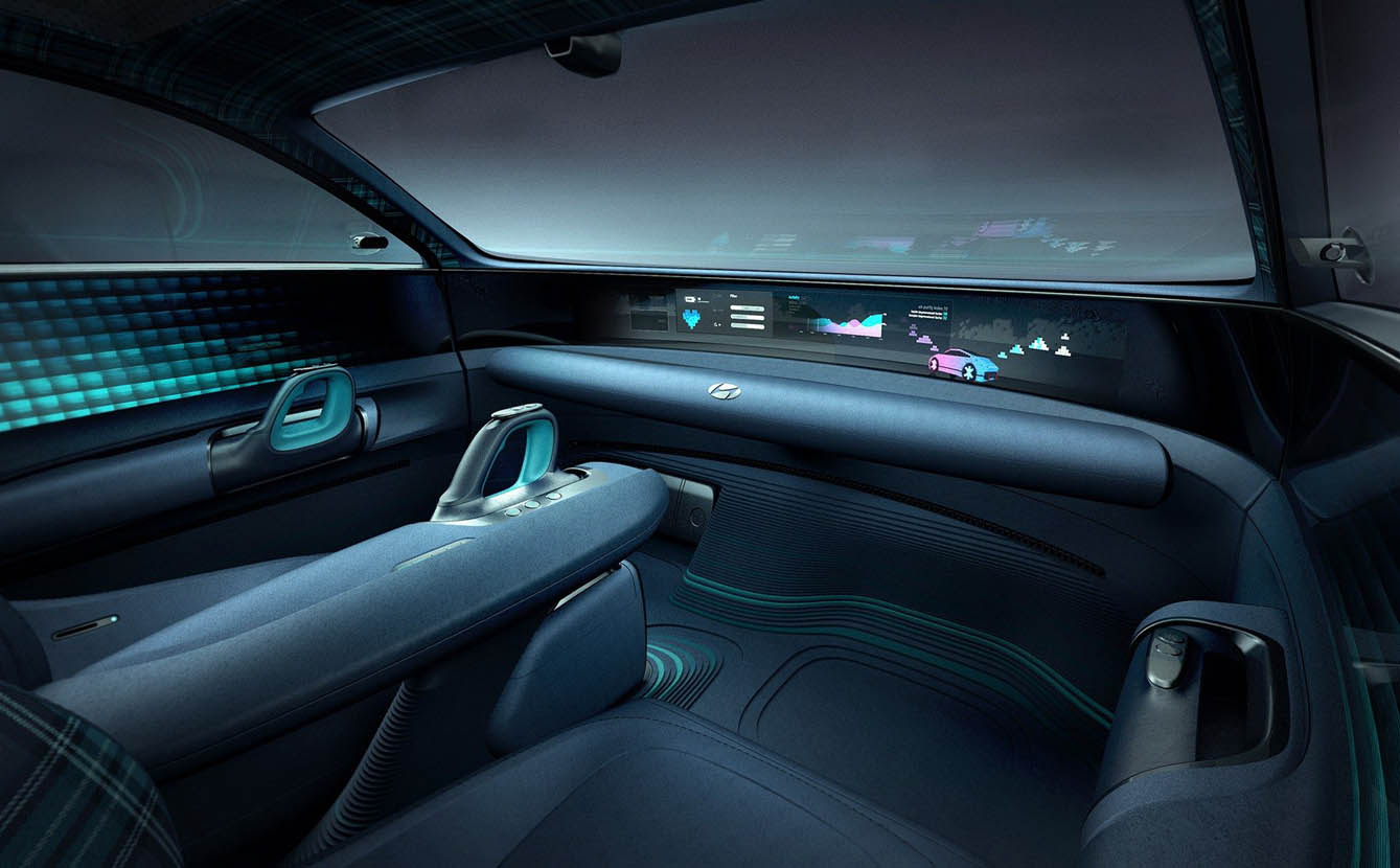Design changes that have been enabled by the use of joysticks offer more visual freedom to passengers. In Relax mode, passengers have virtually zero visual obstacles. In a comfortably reclined position, all that the passengers see is the horizontal pillar-to-pillar display and the wing-shaped dashboard. In this mode, the dashboard swivels, allowing for a spacious interior and seat position from which passengers are able to enjoy content shown on the display.