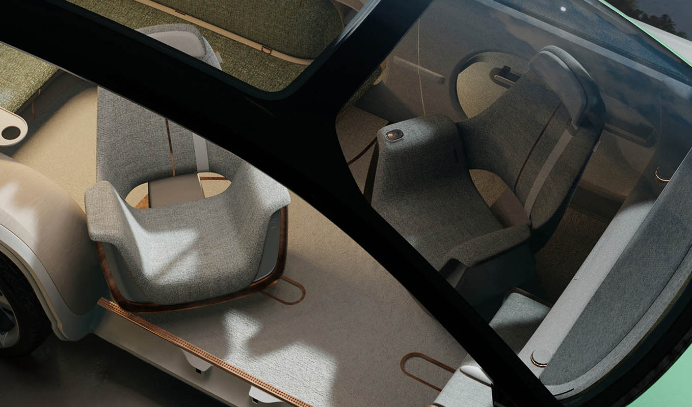 The Hygiene Airflow System takes inspiration from the sophisticated airflow management of passenger aircrafts. In its vertical mode, air is taken in through built in air intakes in the roof rails from which the air travels from above to below, and extracted through the exterior vent behind the rear wheels. In its horizontal mode, the air flows from the slim dashboard to the rear vents.