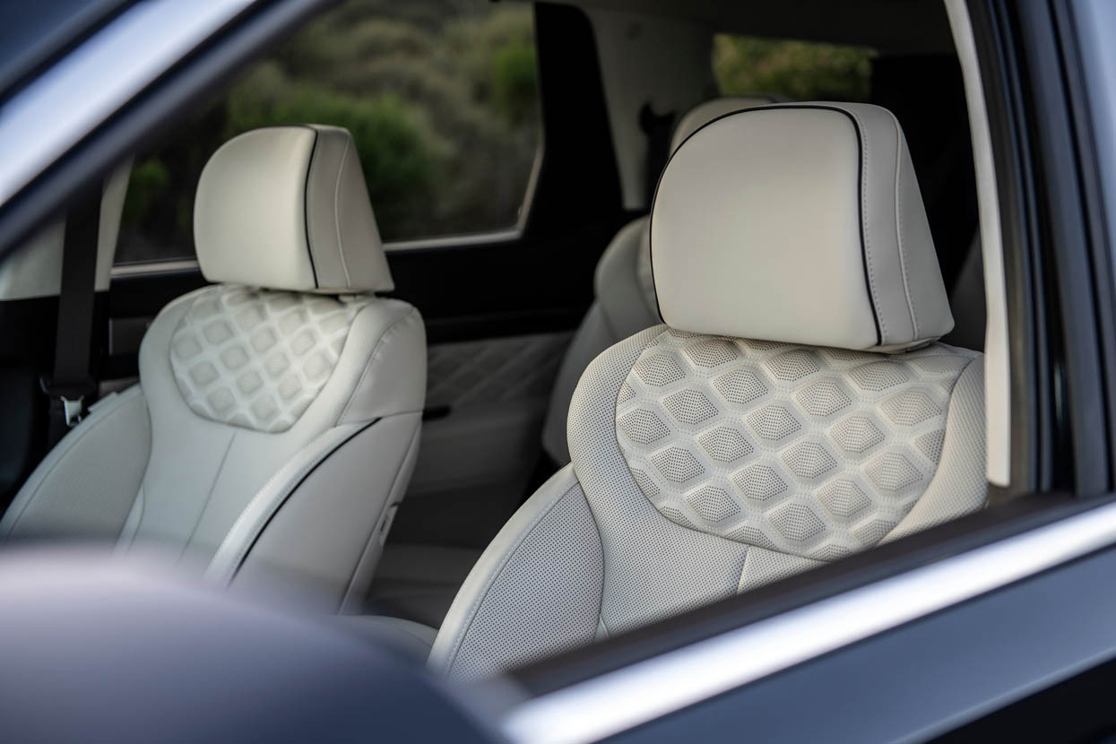 The design of the 2023 Palisade conveys dignified refinement with clear differentiation worthy of a flagship SUV. A wider cascading grille form outlines rugged parametric shield elements for a premium appearance.