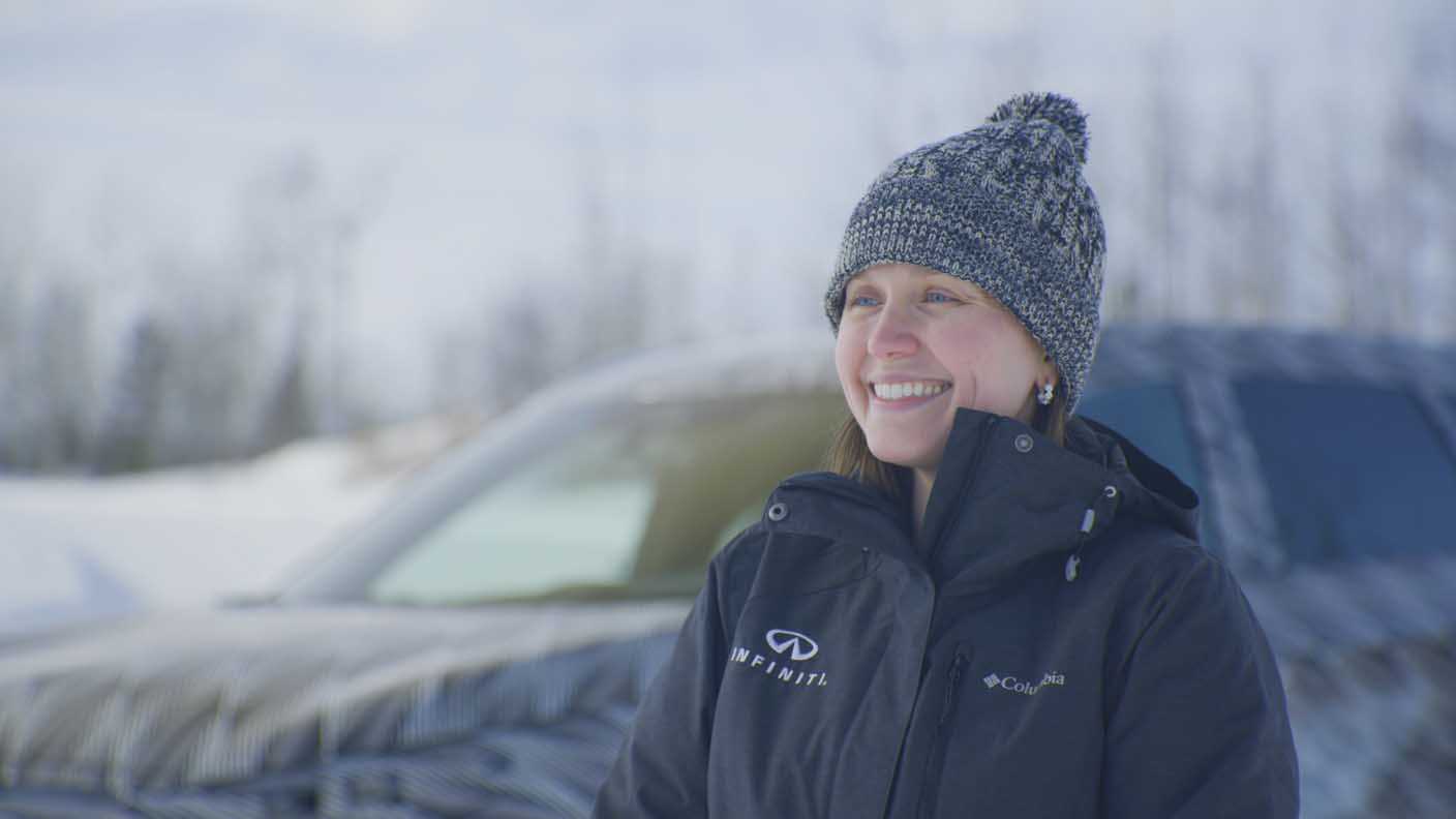 “I have a love-hate relationship with snow. It’s beautiful when it’s newly fallen and glittering in the sunlight, but it’s also hazardous in those conditions. I’m a very cautious driver, by nature,” said Katie Andersen, vehicle performance development engineer for INFINITI. “When I’ve been testing the all-new QX60, I’m still cautious by nature, but I find that the responsiveness is better than my capability and that gives me confidence in driving. And what’s going to give our customers the confidence they need to head out in all of those conditions.”