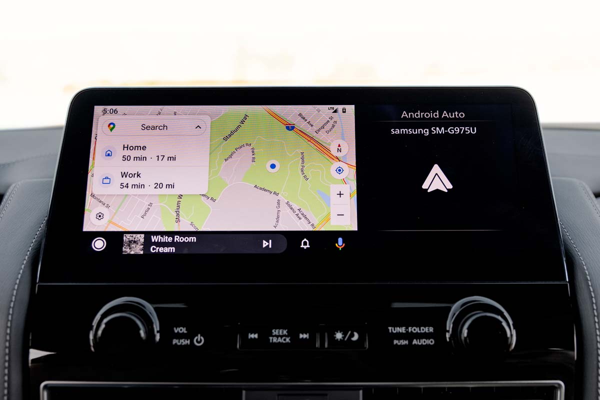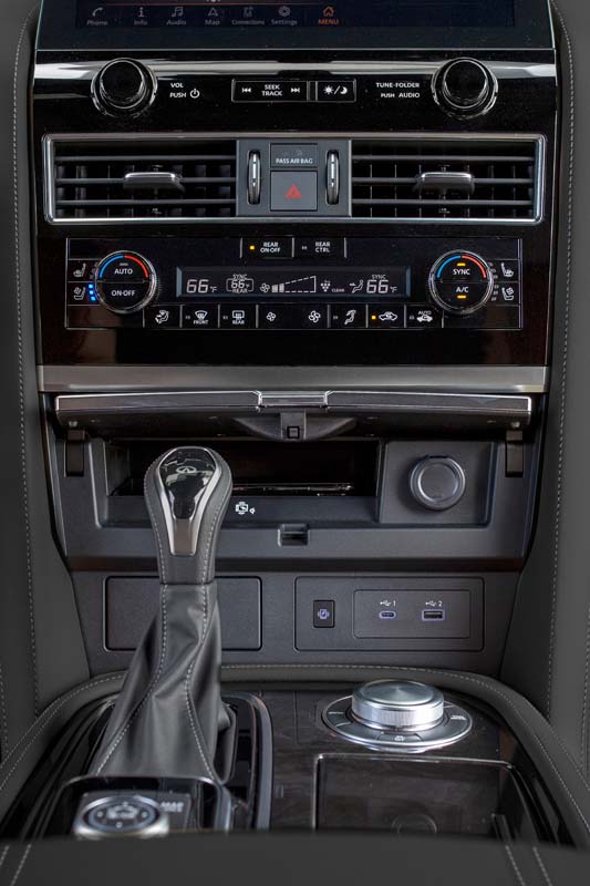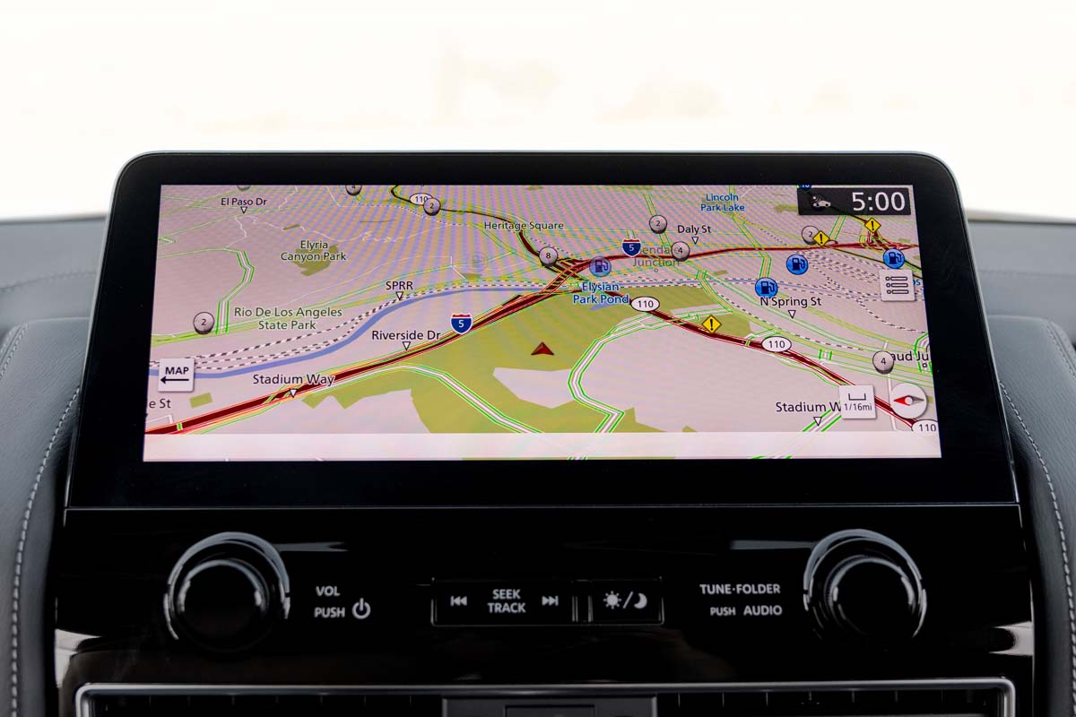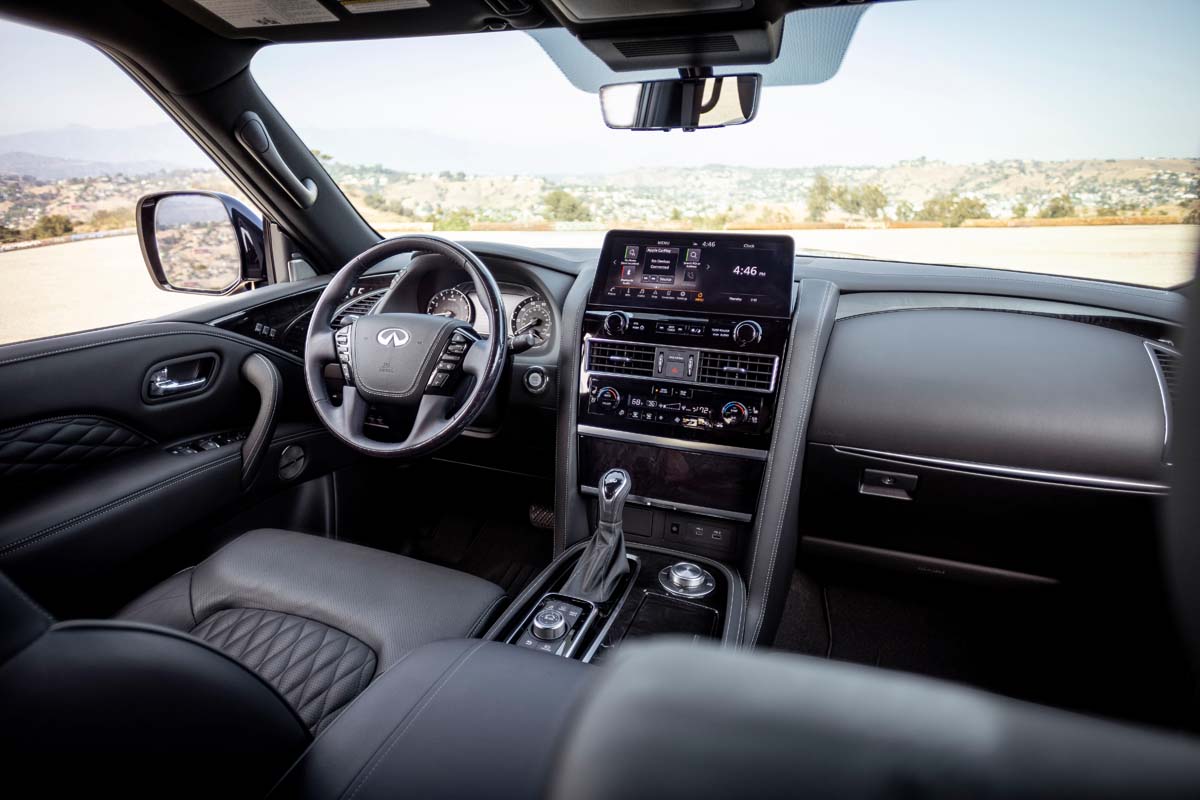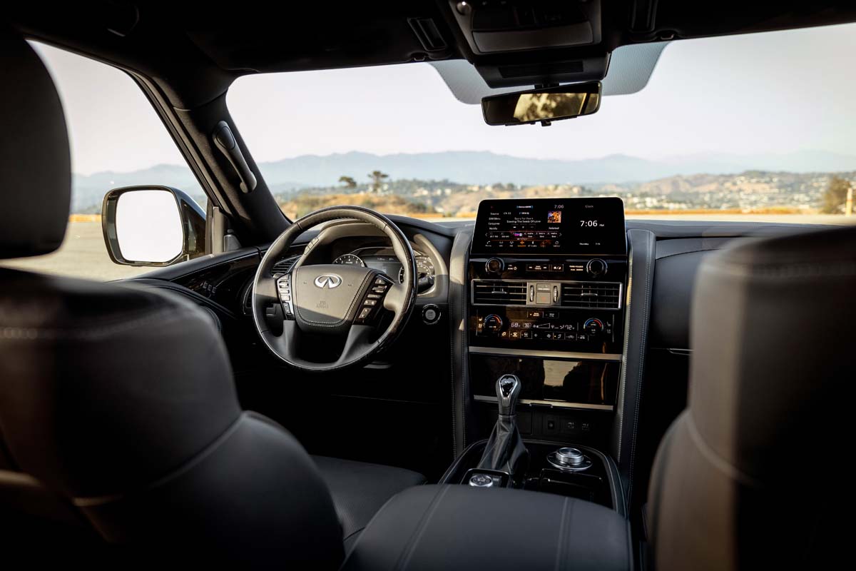 The new 2022 QX80 has been significantly enhanced with a widescreen, high-definition 12.3-inch INFINITI InTouch display that includes wireless Apple CarPlay and USB-based Android Auto compatibility. Standard on all grades, the new display includes navigation with lane guidance and INFINITI’s InTouch Services. Leather-appointed seats in three rows, heated front seats and second-row captain’s chairs are standard. An all-new wireless smartphone charger is included along with a Bose Premium Sound system and Intelligent Cruise Control to support the driver.
