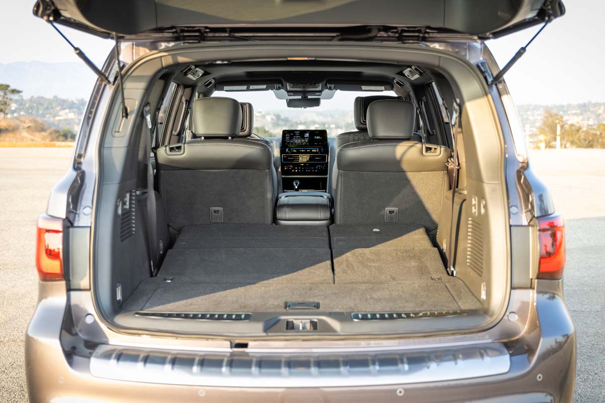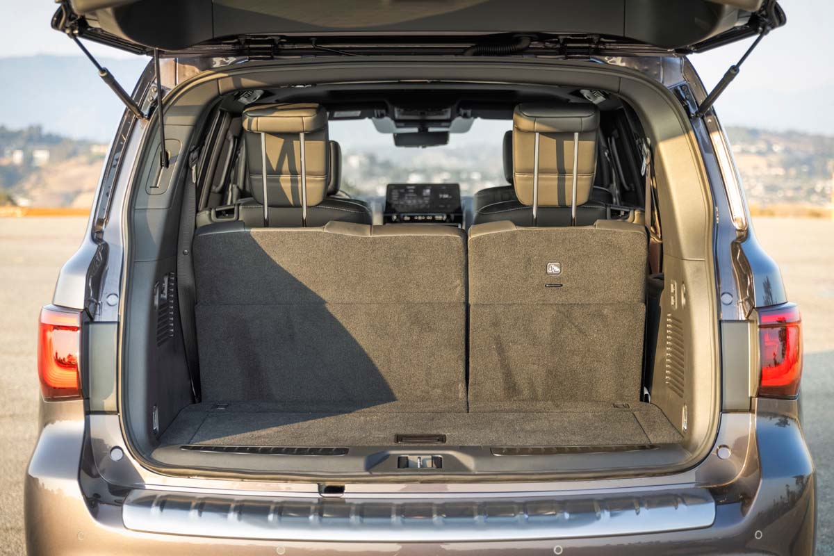 At its heart, the new QX80 is powered by INFINITI’s 5.6-liter V-8 that makes 400 horsepower and 413 pound-feet of torque paired to a 7-speed automatic transmission. Equipped with rear-wheel drive as standard, or available with INFINITI All-Mode Four-Wheel Drive, the new 2022 QX80 is as capable and comfortable as ever.