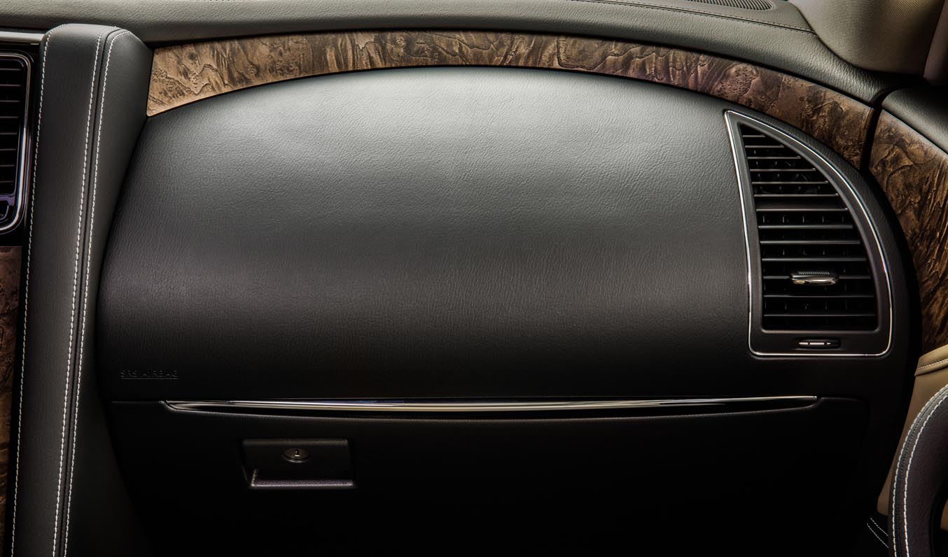 The exterior features stylish 22-inch forged alloy wheels and chrome mirror caps, both of which add to the QX80’s elegant appearance. Infiniti’s Hydraulic Body Motion Control System is also included for enhanced cornering stability and a smoother ride at all speeds.