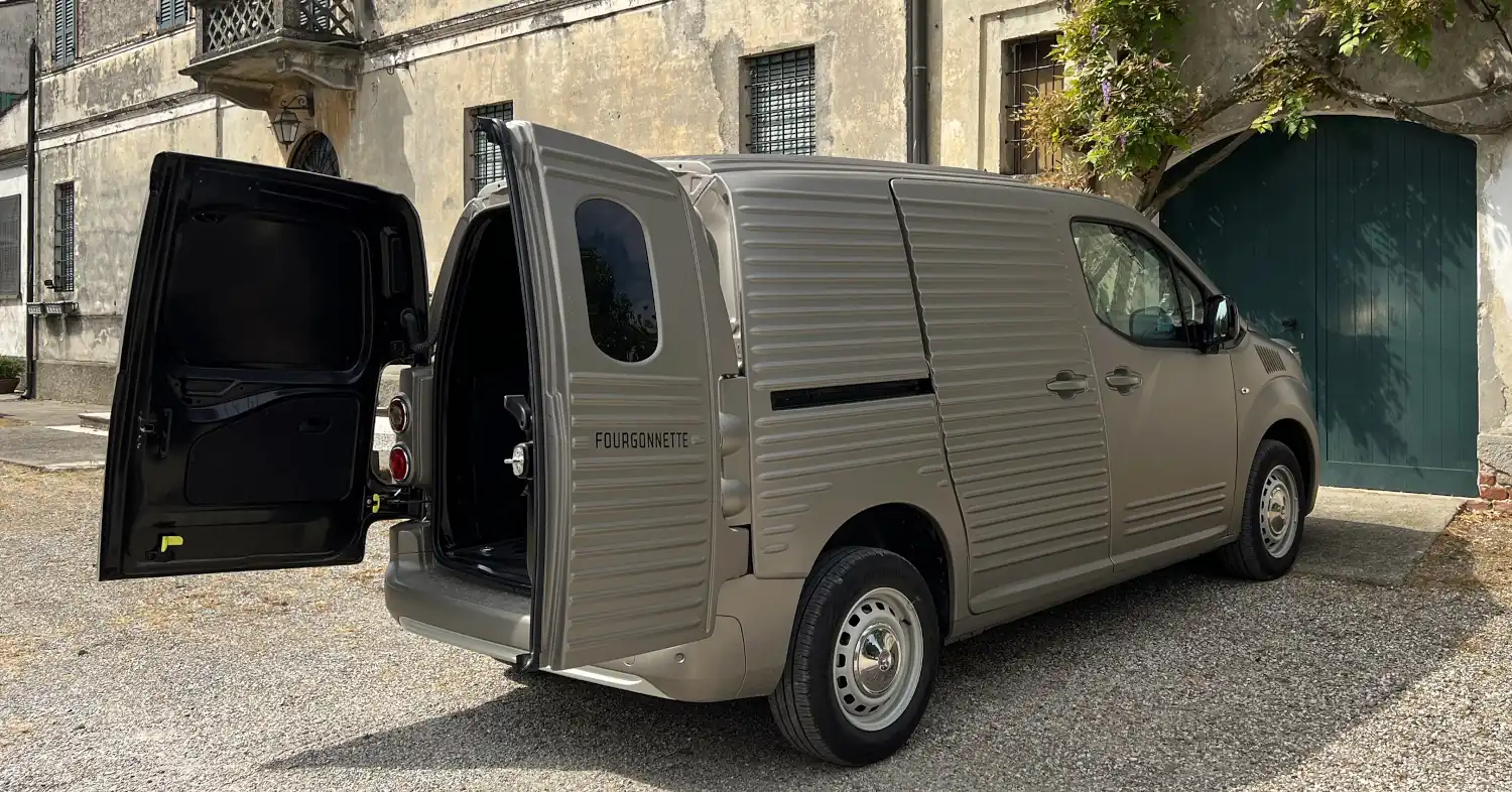 The new version has done away with all the noise of the two-cylinder engine and the hole in the grille for the crank. Needless to say, the Berlingo 2CV Fourgonnette brings with it the best of its era in terms of comfort, space, modularity and safety.