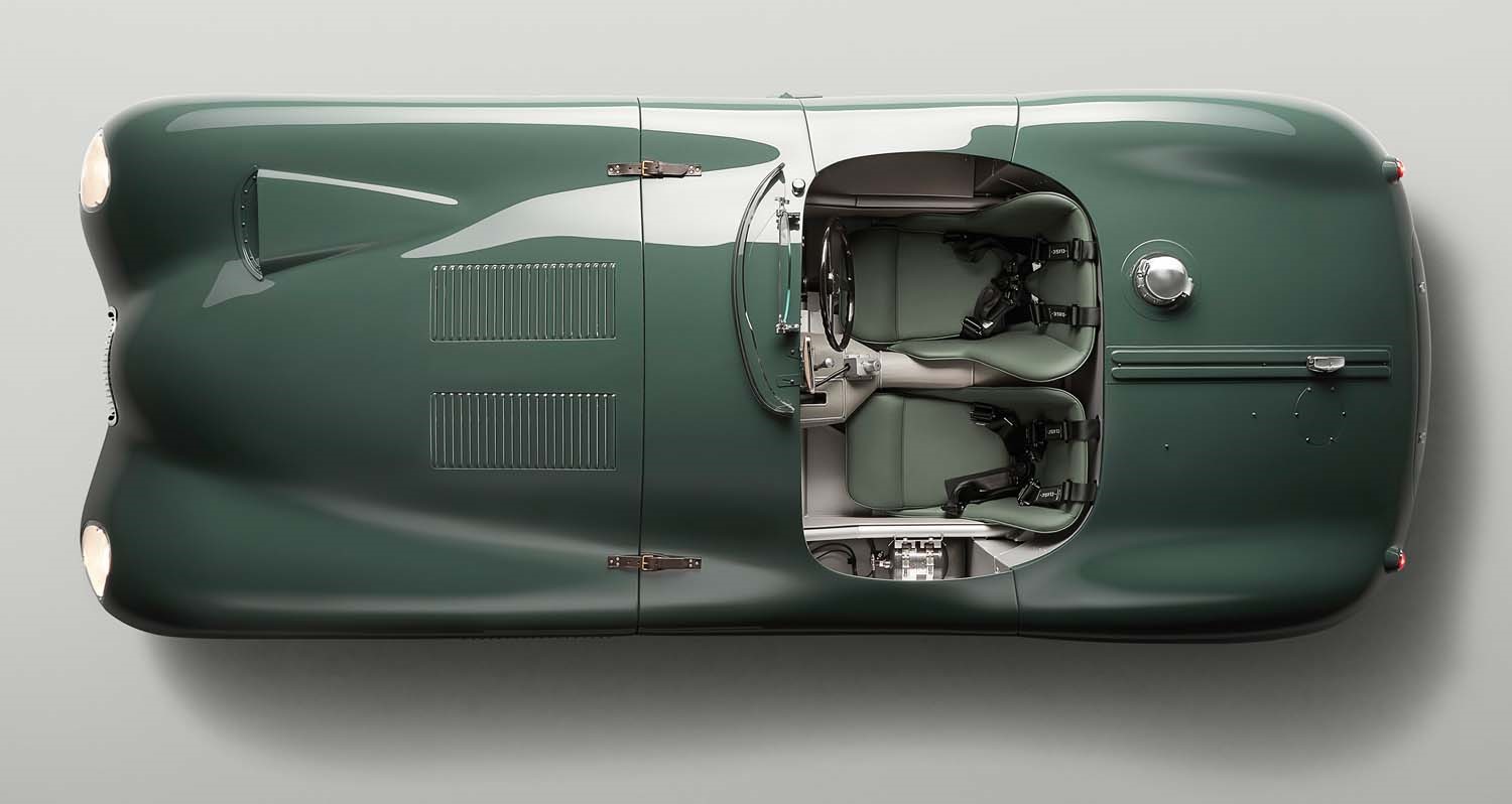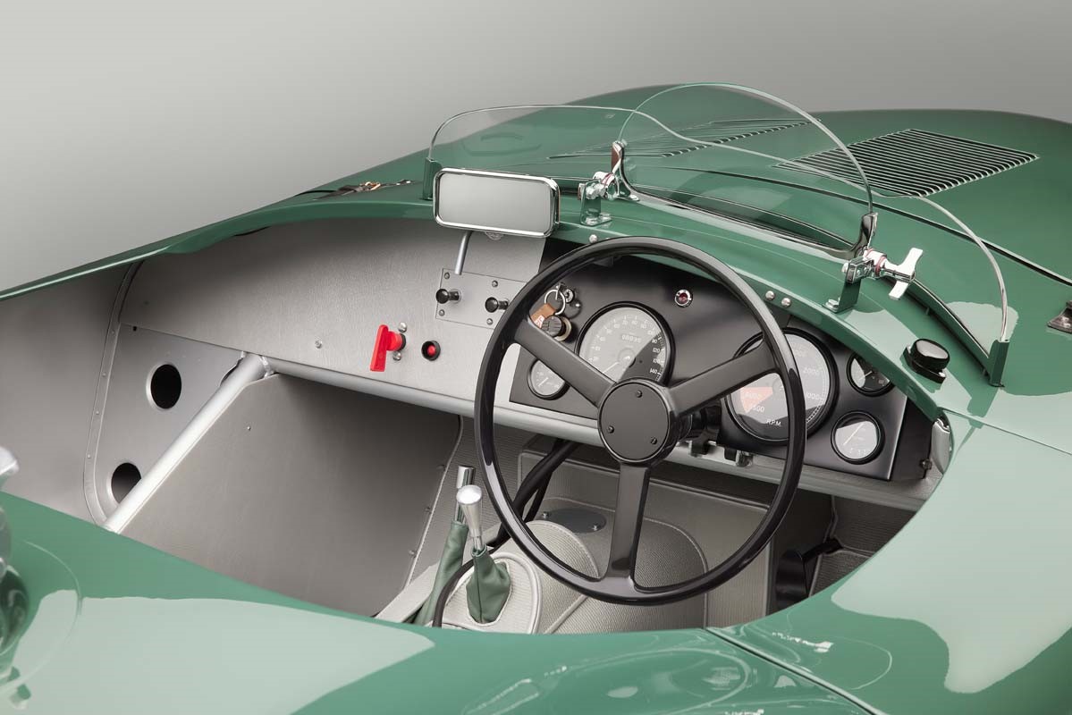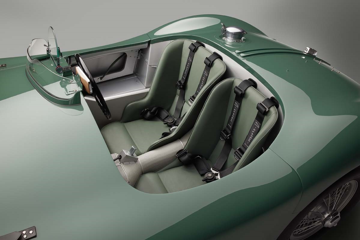 The seats, finished in a choice of eight leather hues, are upholstered by Bridge of WeirTM, and are complemented with racing harnesses – fitted to a newly constructed component behind the rear bulkhead to comply with FIA regulations. A Bluemel steering wheel is true to the original with no roundel affixed to the centre – it was omitted from the original race cars to reduce glare and reflections – however customers can specify the iconic Jaguar badging if they desire.
