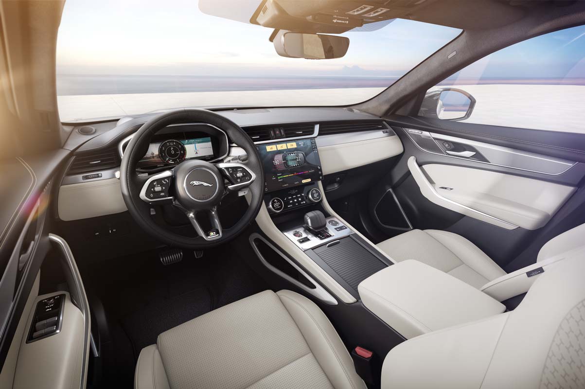The F-PACE is available with the four-cylinder petrol P400e plug-in hybrid powertrain as well a range of four-cylinder and in-line six-cylinder petrol and diesel Ingenium engines, most of which feature 48V mild hybrid systems for even greater refinement and efficiency.
