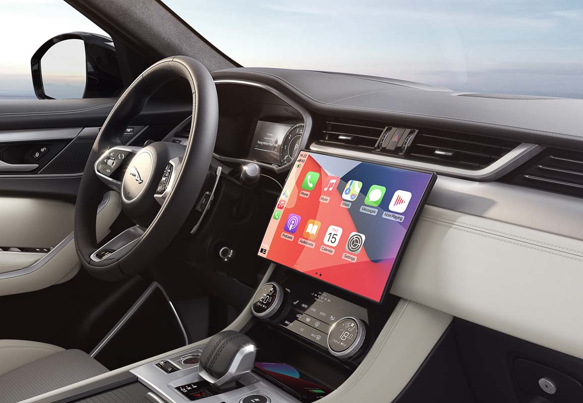 Jaguar’s fast, intuitive and responsive Pivi Pro infotainment system has a range of embedded apps, including Spotify, and has Apple CarPlay® as standard. Android Auto™ is standard too.