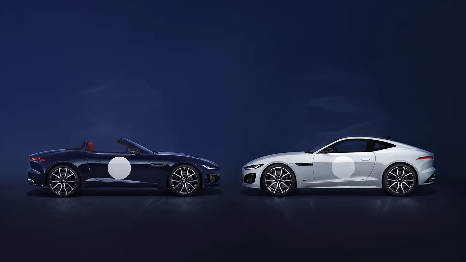 Two F-TYPE ZP Edition colourways are available, recalling the first race-winning ‘Project ZP’ E-types campaigned shortly after the model’s launch in 1961: Oulton Blue Gloss paint with Mars Red and Ebony duotone leather interior, or Crystal Grey Gloss paint with Navy Blue and Ebony duotone leather interior. Both feature Porcelain White Gloss hand-painted racing-style roundels on the doors and Porcelain White Gloss grille surrounds.