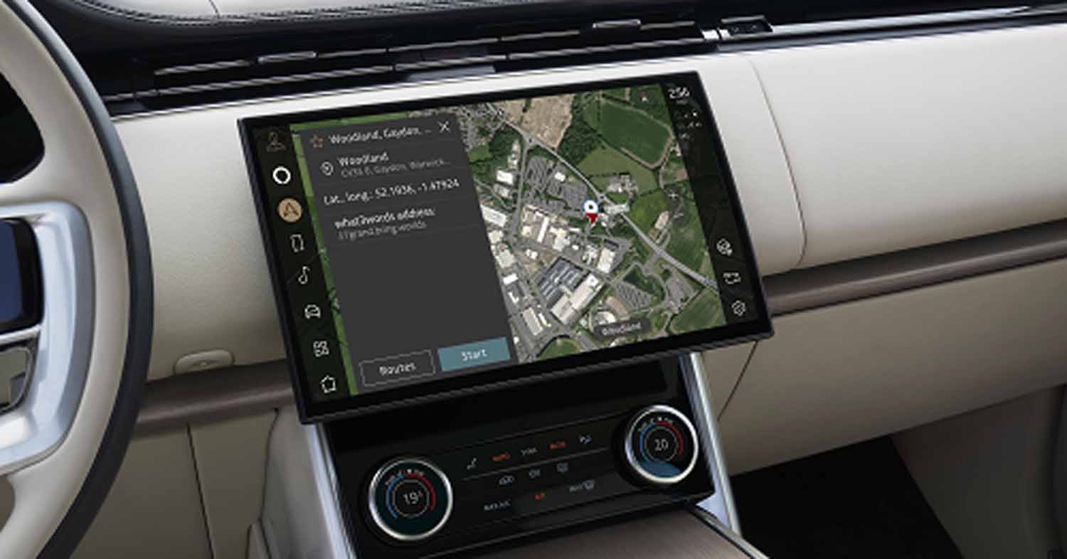 Integrated what3words is available in all new and existing Jaguar and Land Rover vehicles fitted with its advanced Pivi Pro infotainment system.