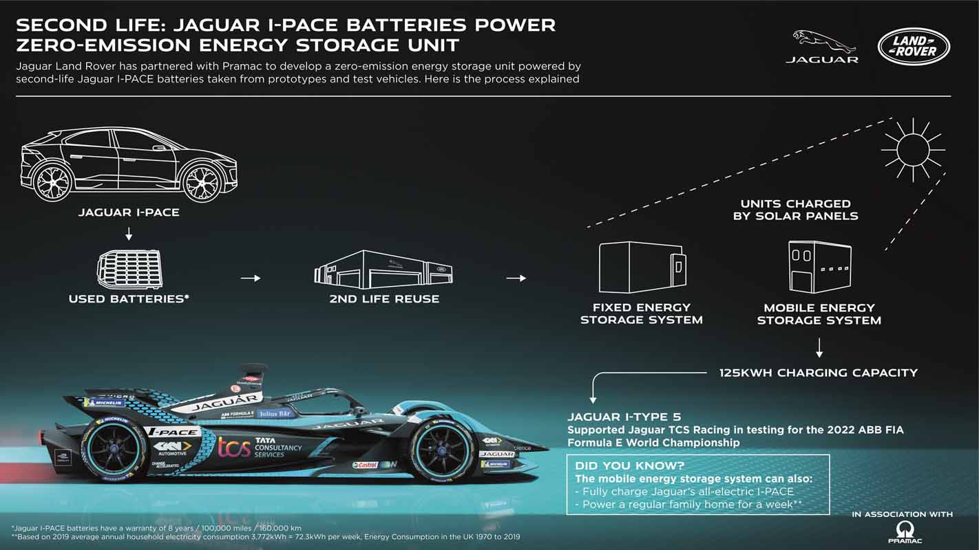 Jaguar Land Rover has partnered with Pramac, a global leader in the energy sector, to develop a portable zero-emission energy storage unit powered by second-life Jaguar I-PACE batteries.