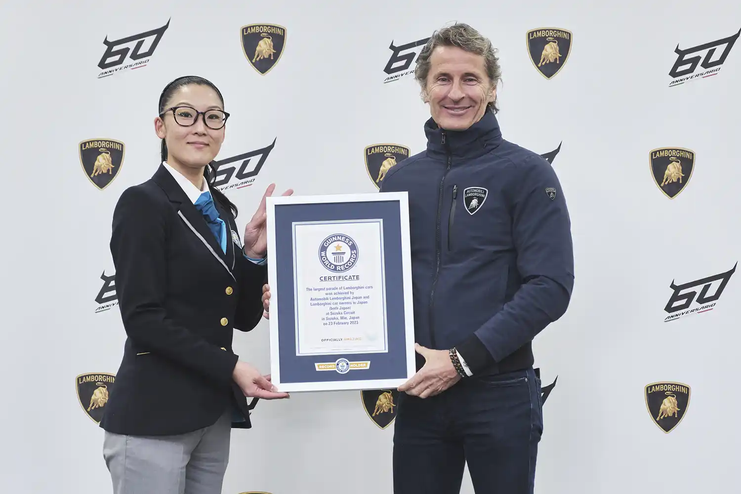Stephan Winkelmann, Chairman and CEO, Automobili Lamborghini, said “This year marks the 60th anniversary since Lamborghini was founded in 1963. The fact that so many Lamborghinis, from current models to classic cars, gathered at the internationally renowned Suzuka Circuit is proof that our brand has touched the emotions of many people here in Japan over its long history and is still so valued today. It is also an immense pleasure to witness this special moment of receiving a Guinness World Record during an important year such as this.”