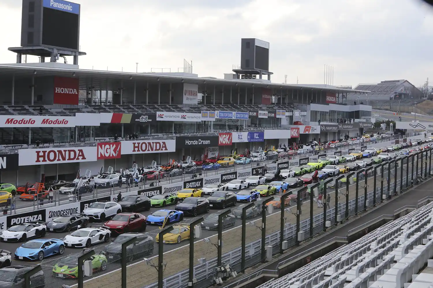 Automobili Lamborghini hosted its 60th Anniversary Lamborghini Day at Suzuka Circuit on 23 February to commemorate the brand’s 60th year. Over 280 Lamborghinis, including both current and classic cars and limited-edition models gathered at Suzuka Circuit. The event kicked off with a parade run around the track where more than 250 Lamborghinis participated from throughout the company’s history, from the Miura to the Countach LPI 800-4. This parade run was recognized by Guinness World Records as the “Largest parade of Lamborghini cars”, a record for the most Lamborghinis driven at one time (251 cars).