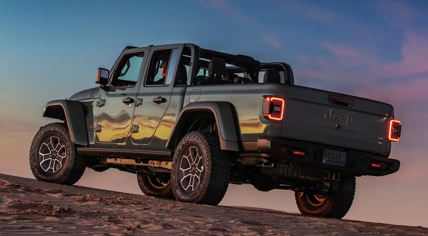 Multiple open-air freedom options, including a new standard premium soft-top, two available hardtops (black and body color), Sunrider for Hardtop and dual-door group with half doors, mean there are dozens of different door, top and windshield combinations, so Gladiator customers can customize their off-road adventure to their specific needs.