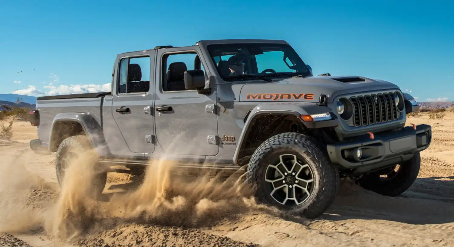 - Traction: By strategically managing and delivering power, Gladiator Mojave conquers unpredictable surfaces, such as sand, gravel and loose dirt, with confidence
