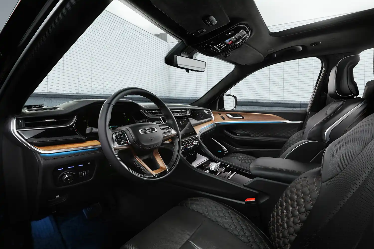 - Trailhawk model features signature 4xe blue stitching on seats, doors, dash and center console