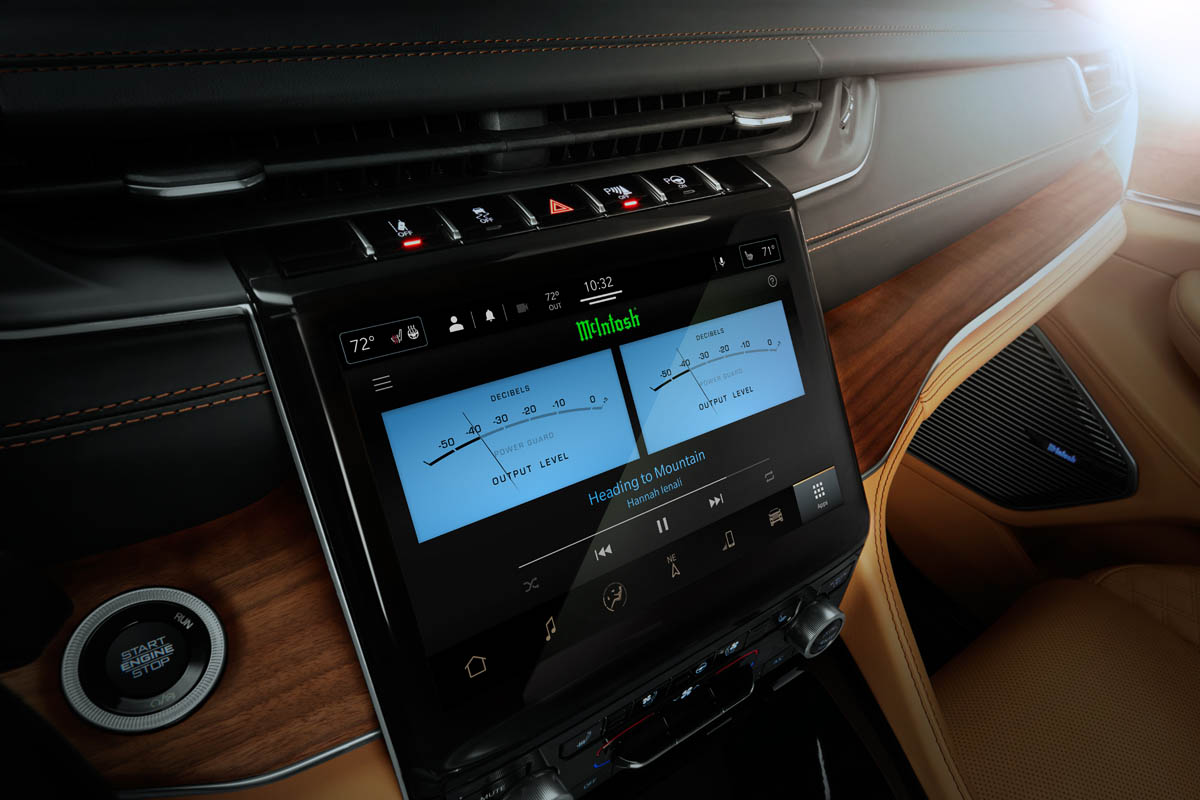 Available first in the Jeep Grand Cherokee L, Stellantis is currently the only automotive manufacturer in the world to carry a McIntosh audio sound system, which comes standard with the Summit Reserve. The advanced, high-performance audio system features a 17-channel amplifier with a maximum output of 950 watts and 19 speakers, including a 10-inch subwoofer, to envelope vehicle occupants in high-definition sound.