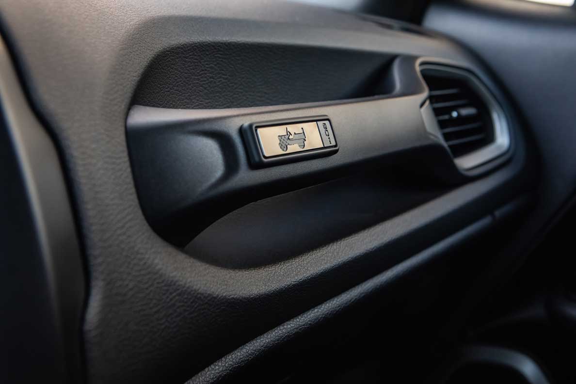 Black headliner and Berber floor mats with commemorative badging enhance the dark, all-black environment where a host of user-friendly technology is found, which includes the UconnectTM infotainment system with 8.4-inch touchscreen, smartphone integration with Apple CarPlay and Android Auto, DAB radio with GPS navigation and UconnectTM services. Unique to the ’80th Anniversary‘ trim is a new infotainment splash screen featuring a ‘Since 1941‘ theme.