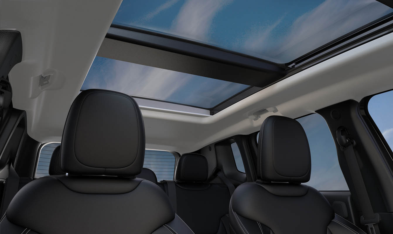 The result is a vehicle which is inspired by the design of Jeep Wrangler through mutual stylistic hints and influences, and is characterised by an even more distinctive and innovative styling, while remaining true to the tradition of the Jeep brand. The exterior of the vehicle retains the functionality that has always been a distinctive feature of the Renegade design and its robust-shaped body. Two open-air roof systems are available to provide customers with open-air freedom – another common and unmistakable feature shared with the Wrangler: a large, dual pane electric sliding glass roof and the exclusive My Sky, characterised by two lightweight panels which can be easily removed and stowed in the boot.