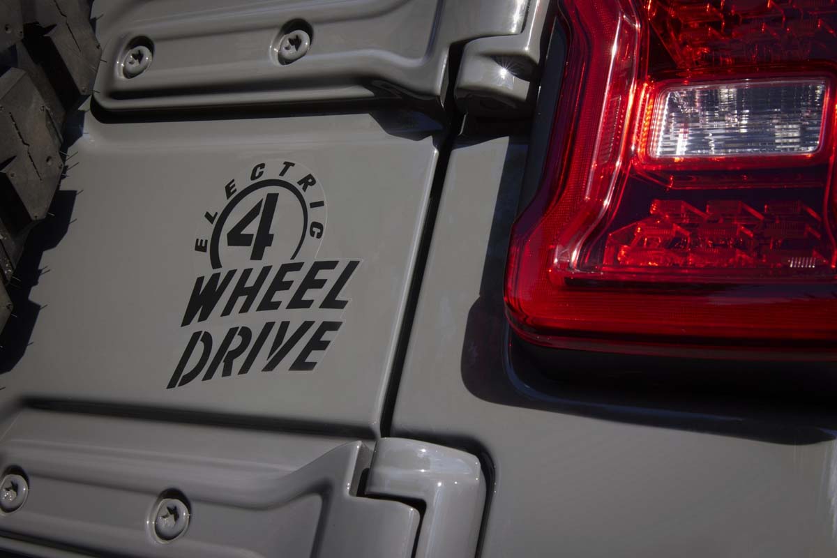 In EV mode, the Wrangler Willys 4xe treads lightly and silently, conserving fuel, allowing occupants to focus solely on the sights and full sounds of nature. The new Jeep Wrangler Willys 4xe is equipped with a full-time 4WD system, front and rear heavy-duty Dana 44 axles and a Selec-Trac two-speed transfer case with a 2.72:1 low-range gear ratio. The intuitive system allows the driver to set it and forget it in any environment. A standard Trac-Lok rear limited-slip rear differential provides extra grip and capability in low-traction situations, such as driving over sand, gravel, snow or ice.
