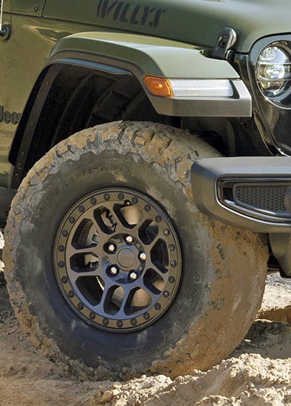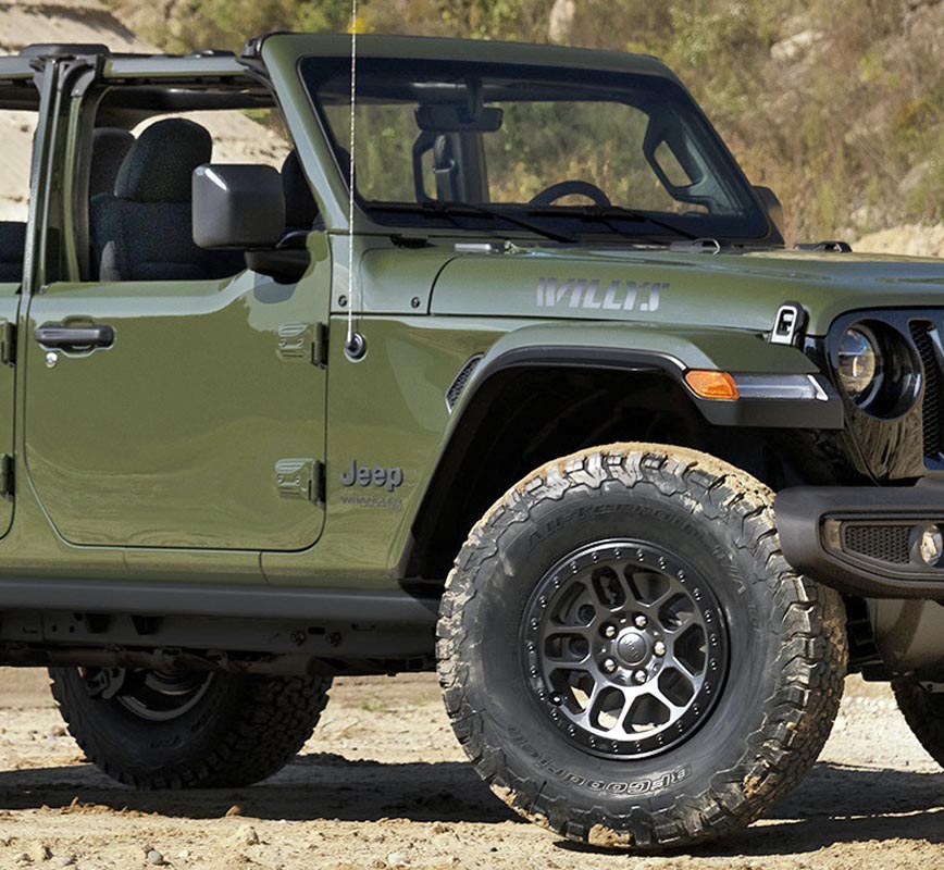 “The new Jeep Wrangler Willys with Xtreme Recon Package gives our passionate customers another great option for straight-from-the-factory 35-inch tires,” said Jim Morrison, Vice President, Jeep Brand North America. “Named after the original Jeep utility vehicle, the Willys holds special meaning to the Jeep brand, and we’re excited to enhance the new Wrangler Willys with 35-inch BF Goodrich KO2 tires.”