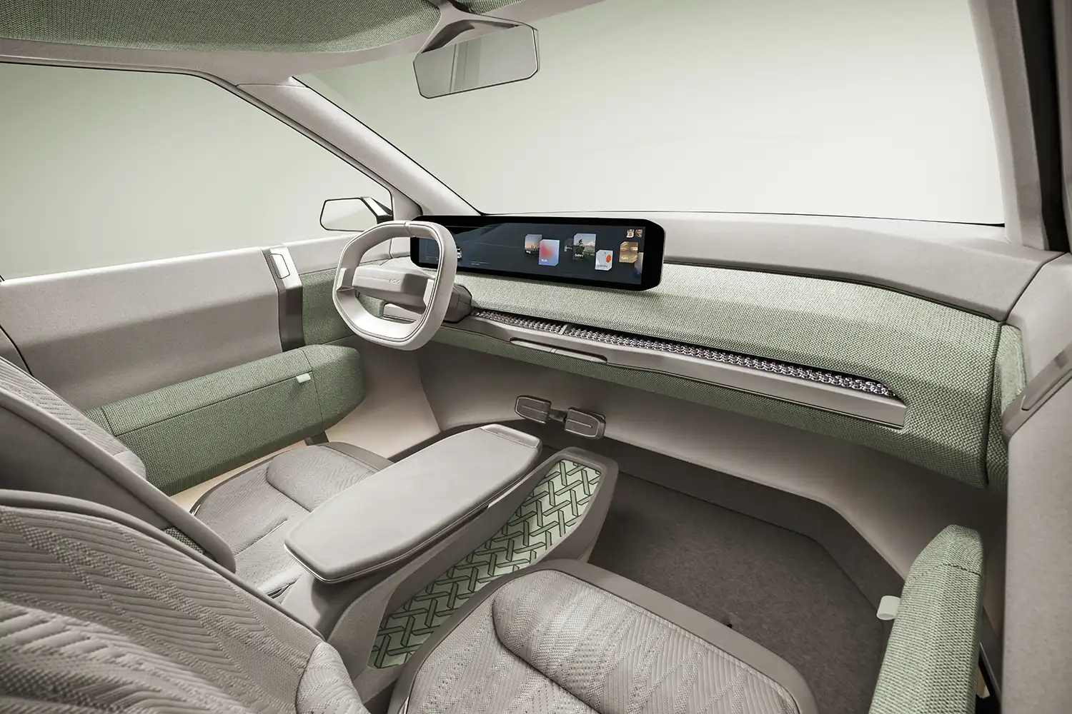 For the Concept EV3, the Kia CMF team deployed natural – as opposed to carbon – fiber structures to deliver a lightweight, slimmer seat design. The exceptionally strong, sustainable fiber weave enables more elegant, modern aesthetics, complemented by soothing natural tones. For the seat covers, the CMF team applied 3D Knit technology. This process not only results in a visually stunning 3D effect with an exceptionally soft surface but also delivers class-leading efficiency with reduced stitching and joins, plus zero waste material.
