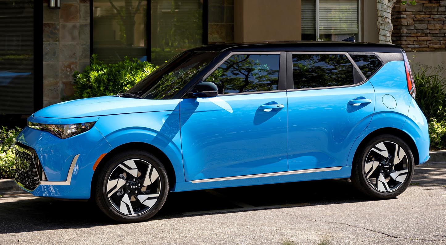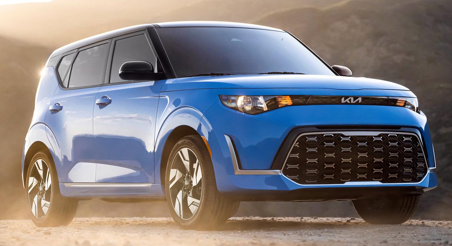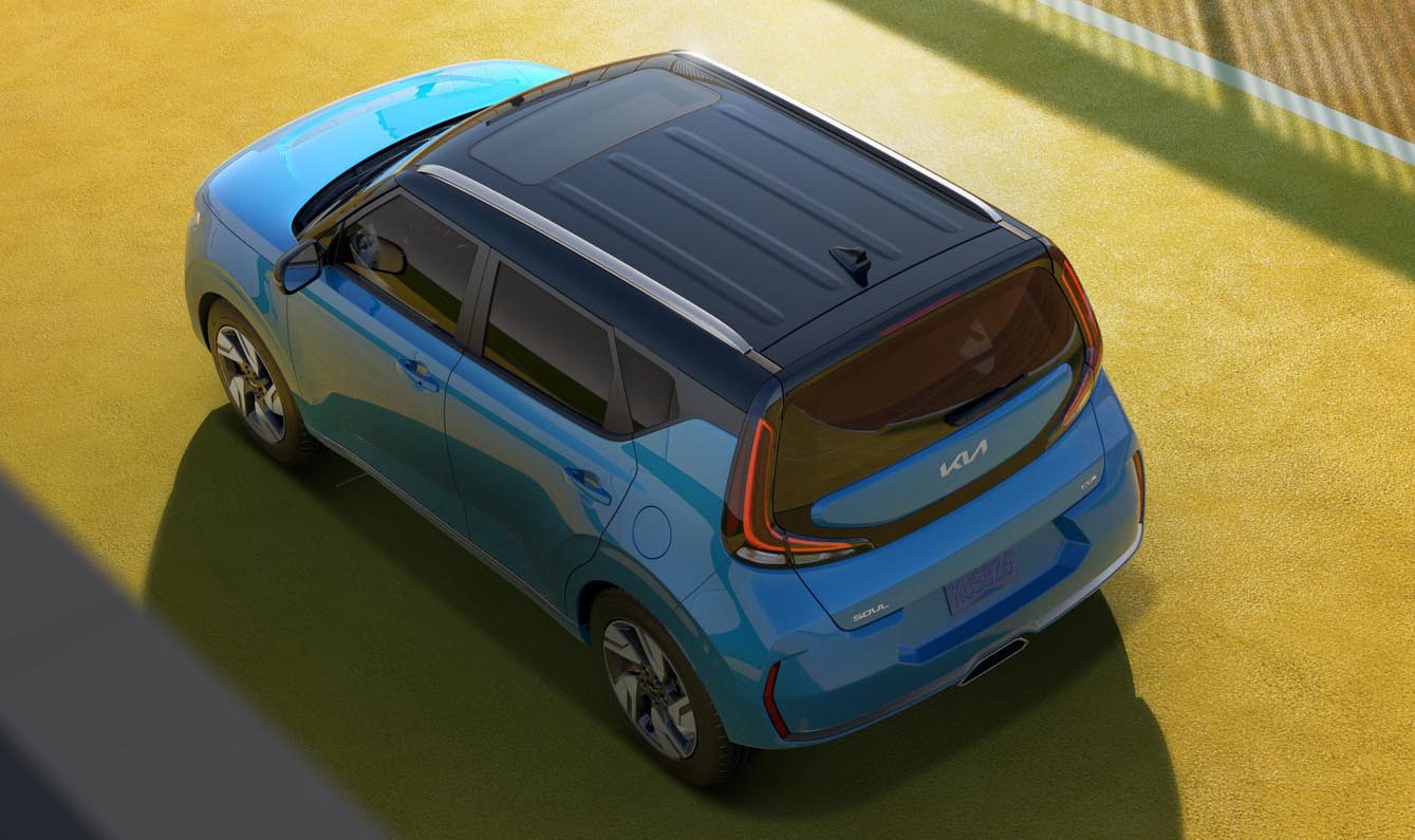 The new 2023 Kia Soul features refreshed design elements inside and out, a simplified lineup, new smile-inducing colors, and two option packages brimming with technology and convenience. The refreshed front fascia features a new grill adorned with available LED headlights and redesigned fog lights. New Daytime Running Lamps and turn signals round out the front-end redesign. New available 17- and 18-inch alloy wheels and a redesigned rear fascia and taillights complete the exterior enhancements. A multitude of solid and two-tone exterior paint schemes remain and are complemented by new two-tone paint programs: Clear White with Fusion Black roof and Surf Blue with a Fusion Black roof. Inside, well-placed switchgear falls readily to-hand while the 10.25-inch (standard on all but LX trim) touchscreen with navigation is a welcome addition to the tech-forward cabin.