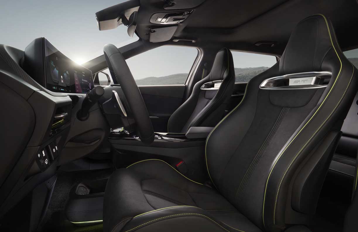 Dual curved 12.3-inch infotainment displays deliver all driving, connectivity and entertainment functions in pin-sharp clarity, and the simple form language of the wide screens and horizontally aligned dashboard give the interior a cosseting and high-tech feel. An ergonomic two-spoke steering wheel includes a dedicated new GT Drive Mode selector, enabling drivers to easily access and customise their driving experience.