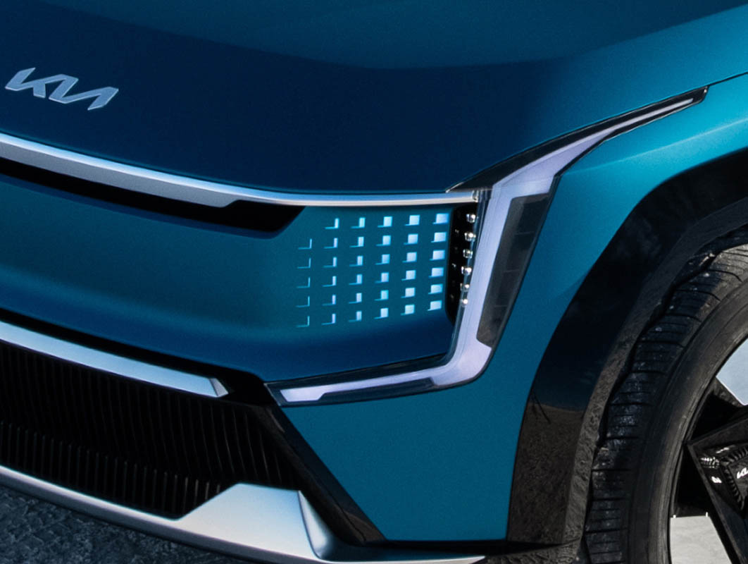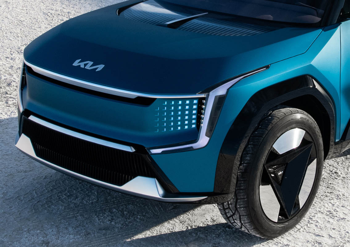 Kia’s iconic Tiger Face facade has been reinterpreted for the BEV era and is showcased on the Concept EV9.