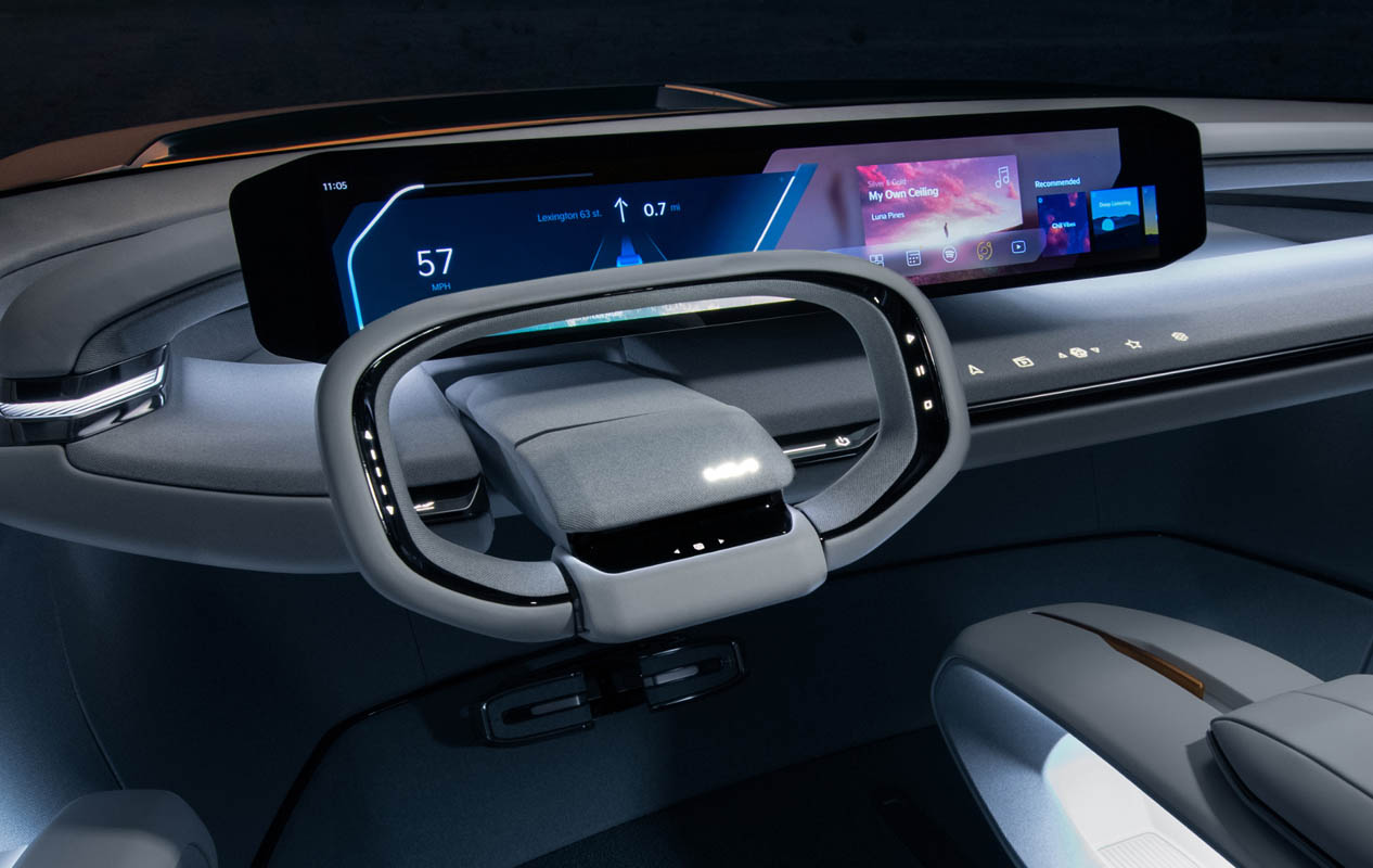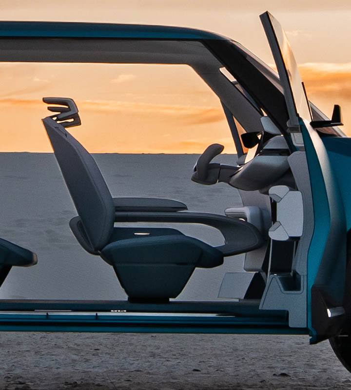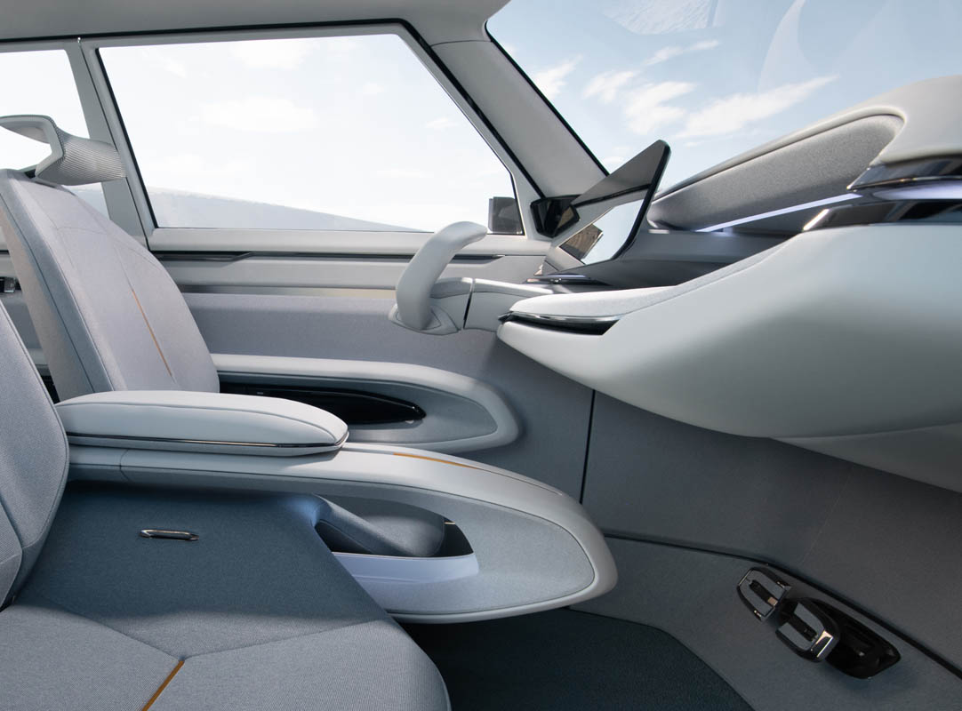This sense of ‘tomorrow’ extends from the visionary interior design and into the steering wheel. The automotive industry today treats the steering wheel like a separate product – a total standalone subsystem; the Concept EV9, however, takes a radically different approach in which the pop-up steering pad is an extension of – and integrated and harmonized within – the interior space.