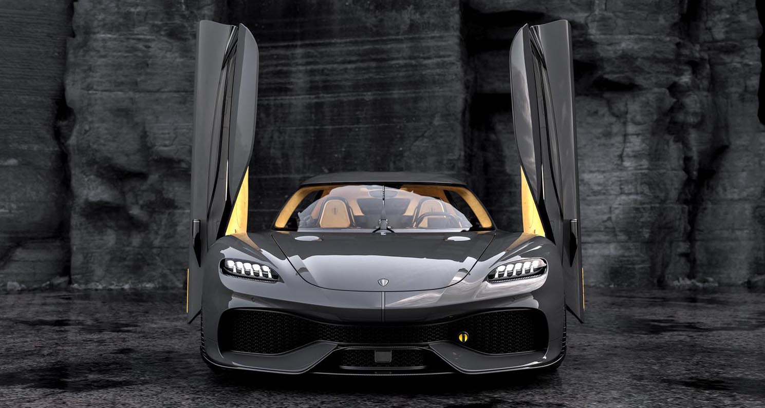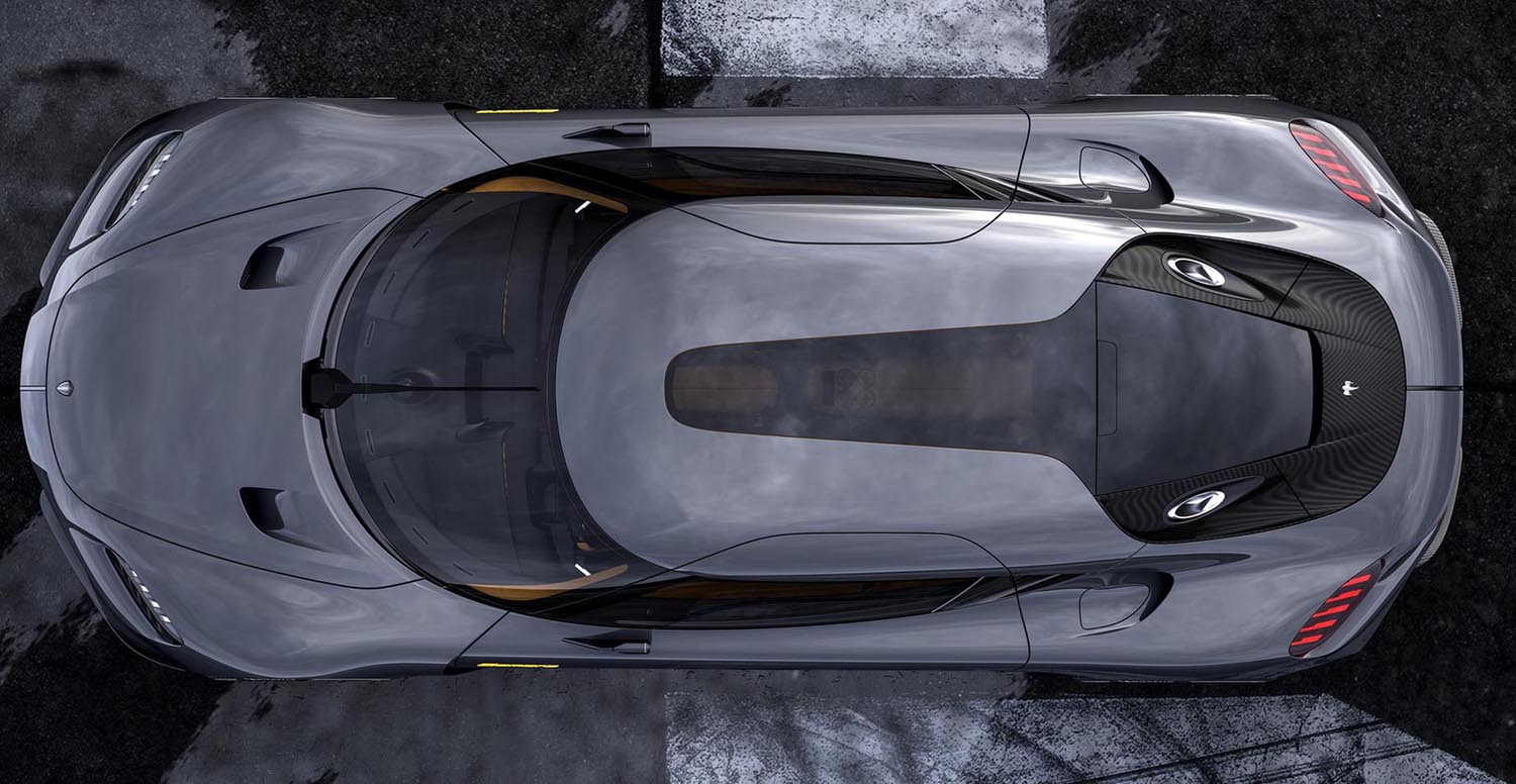 The front design is inspired by the first-ever Koenigsegg prototype – the Koenigsegg CC from 1996.