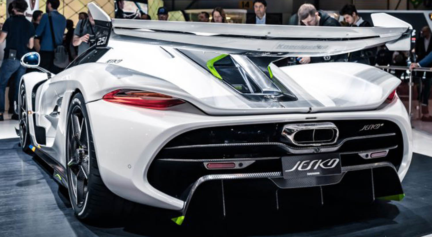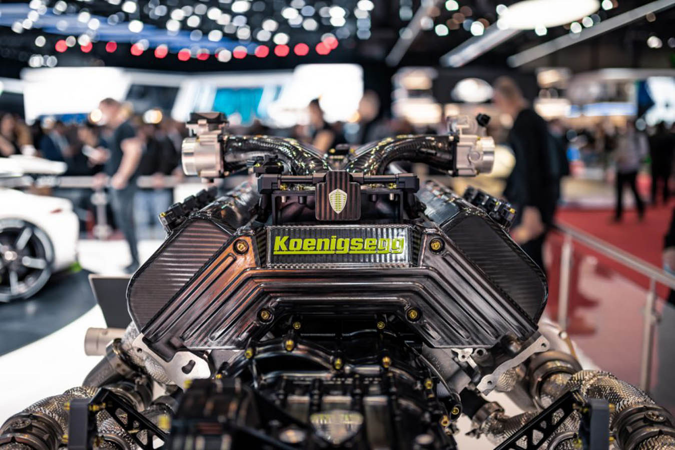 Koenigsegg Jesko is powered by a re-designed twin-turbo V8 engine with a new 180-degree flat-plane crankshaft, new intake, bigger turbos with air injection, and more precise pressure control.