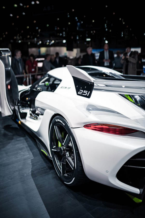 Jesko’s new optional carbon fibre wheels are the lightest and strongest production wheels of their size. Larger than the Agera RS wheels they replace, the front weighs just 5.9kg (20″ x 9.5″) and the rear 7.4kg (21″ x 12″).
