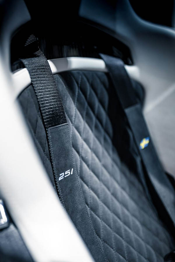 Koenigsegg’s unique dihedral synchro-helix door has been re-engineered to allow for a better opening angle, allowing easier ingress and egress as well as better protection from high curbs.