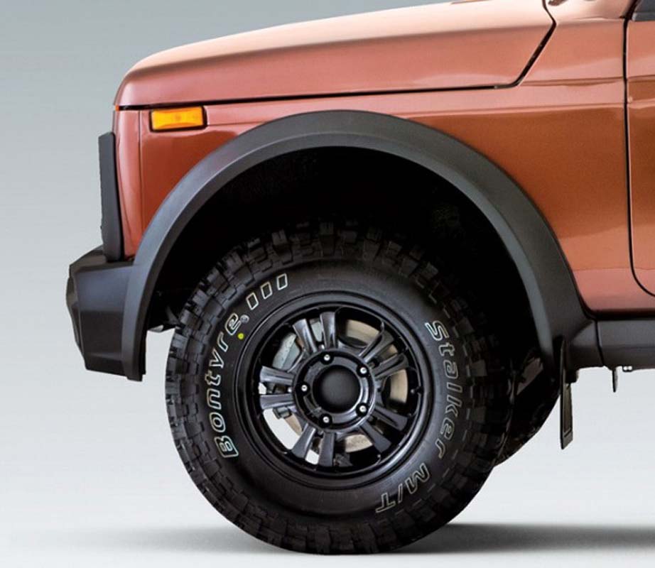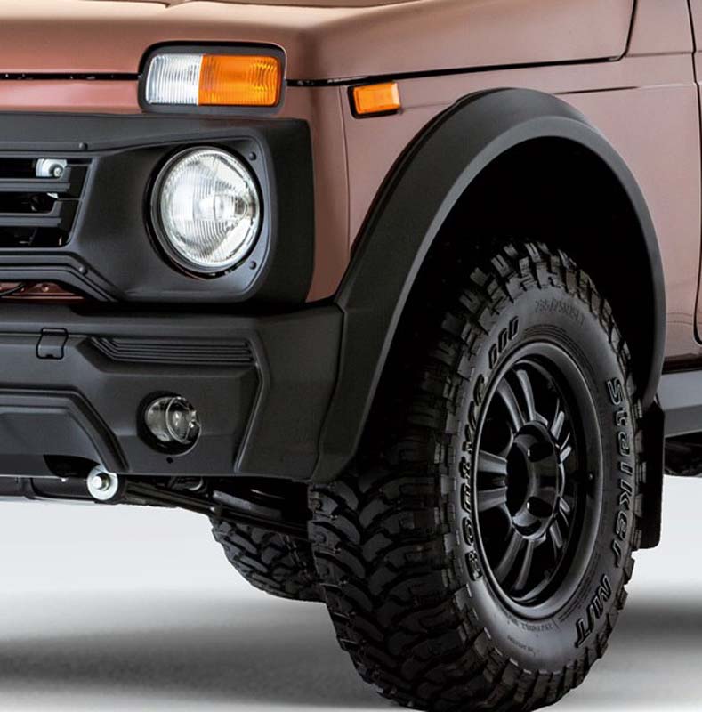 The Luxe package includes standard metal bumpers, rails, wheel arch extensions, 15” wheels with MT tires. In the Prestige version, in addition to the above, the car is complemented by an original radiator grille and massive plastic bumpers, threshold protection, plastic wheel arch linings and fog lights.