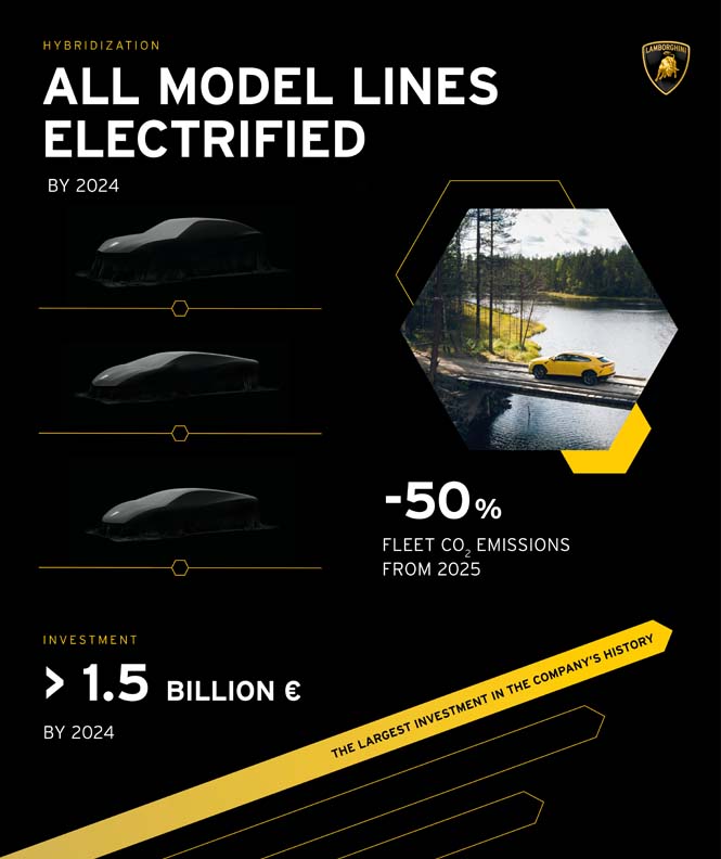 Winkelmann commented: “Lamborghini’s electrification plan is a newly-plotted course, necessary in the context of a radically-changing world, where we want to make our contribution by continuing to reduce environmental impact through concrete projects. Our response is a plan with a 360 degree approach, encompassing our products and our Sant’Agata Bolognese location, taking us towards a more sustainable future while always remaining faithful to our DNA. Lamborghini has always been synonymous with preeminent technological expertise in building engines boasting extraordinary performance: this commitment will continue as an absolute priority of our innovation trajectory. Today’s promise, supported by the largest investment plan in the brand’s history, reinforces our deep dedication to not only our customers, but also to our fans, our people and their families, as well as to the territory where the company was born in Emilia-Romagna and to Made in Italy excellence.”
