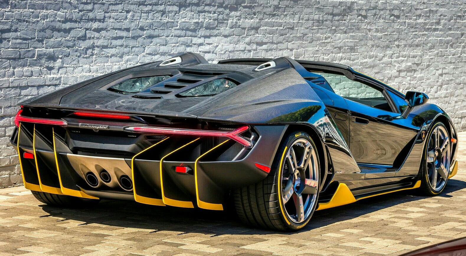 The integrated rear diffuser dominates the back of the car, its substantial dimension optimizing air flow distribution, maximizing the car’s downforce and aesthetically emphasizing the importance of aerodynamics in the Centenario. The ‘Y’- shaped LED lights stretch the full width of the rear, distinguishing the Centenario day or night.